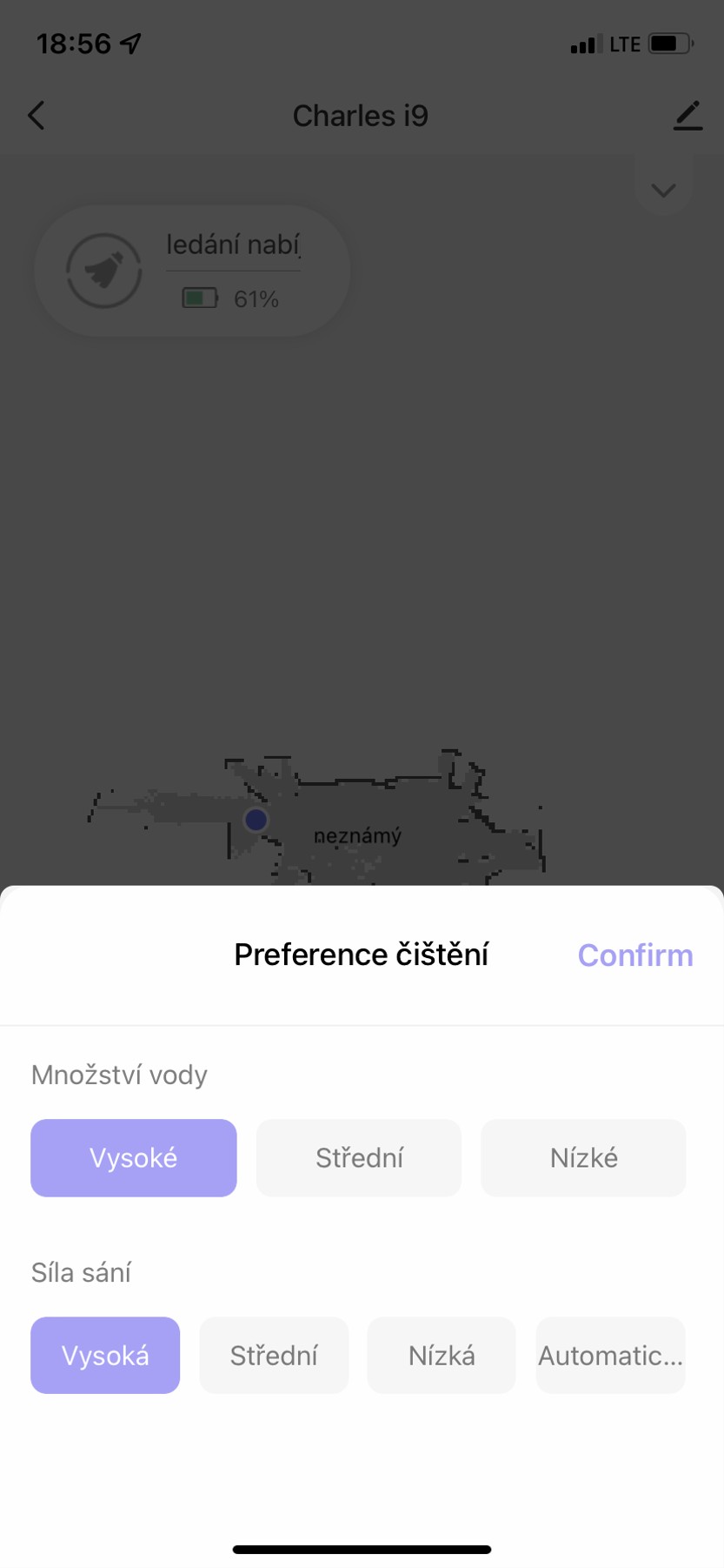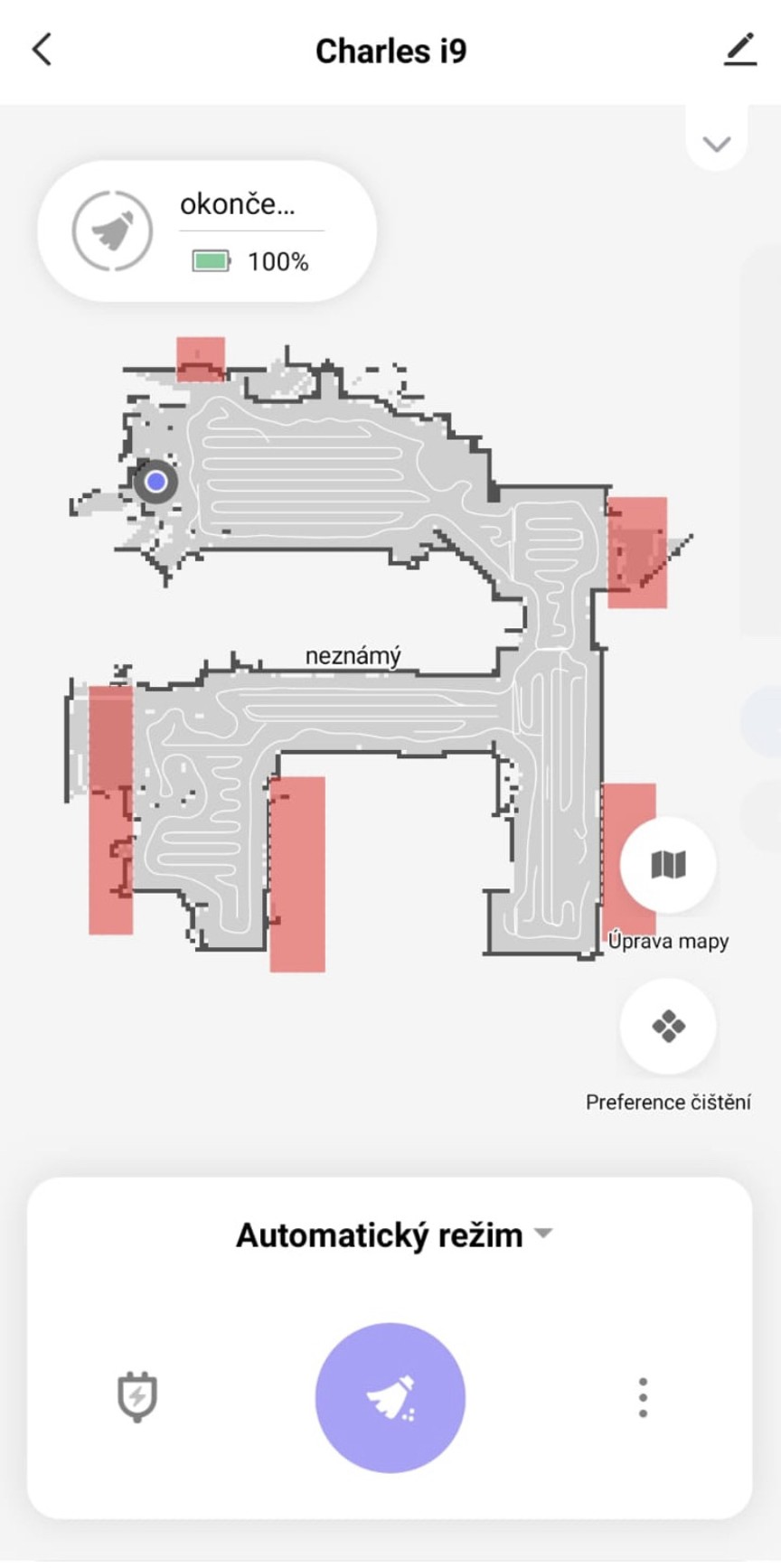 Předně je třeba říct, že Niceboy iON Charles i9 je možné používat i bez aplikace. Kam ho zkrátka dáte a zapnete, tam uklidí. Pro maximalizaci potenciálu je ale vhodné stáhnout aplikaci Niceboy ION. Aplikace je zdarma jak v Google Play, tak App Store. Nalezení vysavače je velmi jednoduché a tento krok vám zabere jen pár desítek sekund. Jakmile elektrický vysavač spárujete (stisknutím obou tlačítek na vysavači a následném odkliknutí v aplikaci) po klinutí na něj v aplikaci jako první uvidíte jím naskenovanou mapu. Samozřejmě ale za předpokladu, že už byla uklizena a naskenovaná místnost. Tu si sám vytvoří během úklidu. V aplikaci vidíte, kudy projel i jeho současný stav baterie. Mapu můžete taktéž upravovat. Můžete vytvořit „červené zóny“, kudy robot nepojede. Lze tak zabránit vjezdu do konkrétních prostorů a efektivně tak například zabránit scénáři, kdy vysavač vjede do misky vašemu mazlíčkovi. Je zde možné také zvolit sílu sání či množství použité vody. Dále jde vytvářet časové plány, nastavovat jazyk, hlasitost hlasu, hledat zařízení, prohlížet záznamy úklidu nebo ovládat robota manuálně. Taktéž zde vidíte stav spotřebního materiálu v podobě životnosti filtru, bočního kartáče, válcového kartáče a mopu. Jakmile životnost klesne na nulu, budete vyzváni ke kontrole a čištění. Aplikace je skvěle přehledná a kompletně v češtině.