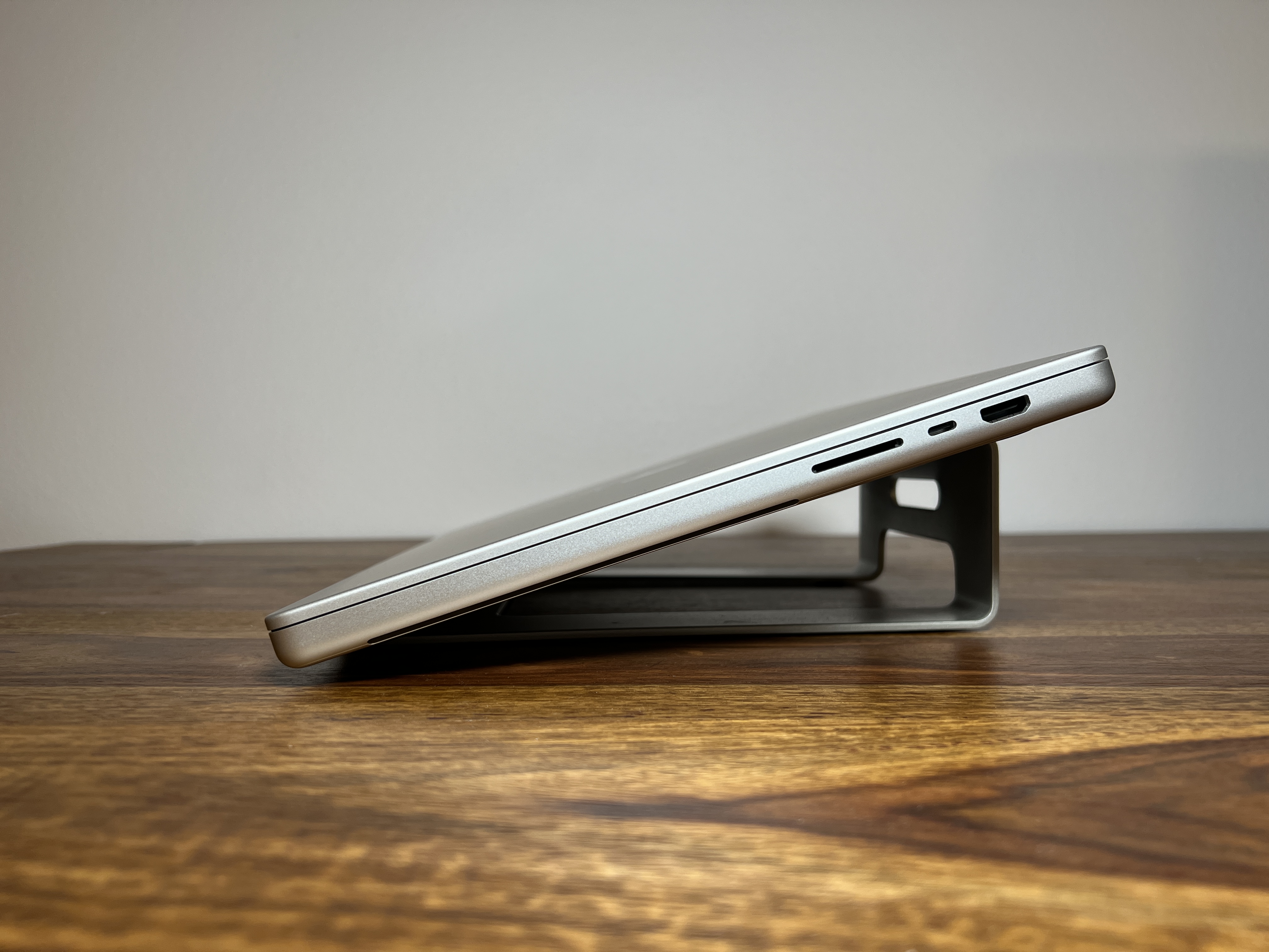 Co se samotného designu týká, ten mi jako staré škole připomíná něco mezi MacBookem Pro a starým dobrým PowerBookem G4 Titanum. Tělo je po dlouhých letech neustálého ztenčování a zmenšování skutečně masivní a působí na vás dojmem, jako byste se dívali na několik let starý počítač, protože to, co je nové a rychlé má být přece malé a tenké, alespoň tak nás to posledních deset let Apple učil. Tentokrát však máte v ruce opravdu masivní kus počítače. Spodní stranu kromě vyraženého nápisu MacBook Pro, který mimochodem vypadá opravdu dobře, zdobí také čtveřice velkých a opravdu stabilních gumových podložek, které jsou zapušteny do hliníkových výlisků samotného krytu. Díky nim MacBook drží na stole jako přibitý. Spodní výřezy na bocích působí tak trošku jako SuperDrive mechanika, a dokonce jsem si pár vteřin říkal, zda se Apple poté, co se vrátil k HDMI, nevrátil také k DVD mechanice. Jedná se však pouze o průduchy pro chlazení. Nad nimi pak na levé straně naleznete MagSafe 3, dvojici Thunderbolt portů ve verzi 4 a světe, div se, také 3,5 mm jack konektor pro sluchátka. Na protilehlé straně je pak další Thunderbolt 4 konektor, HDMI konektor a také slot na SDXC karty, respektive microSD karty s redukcí.