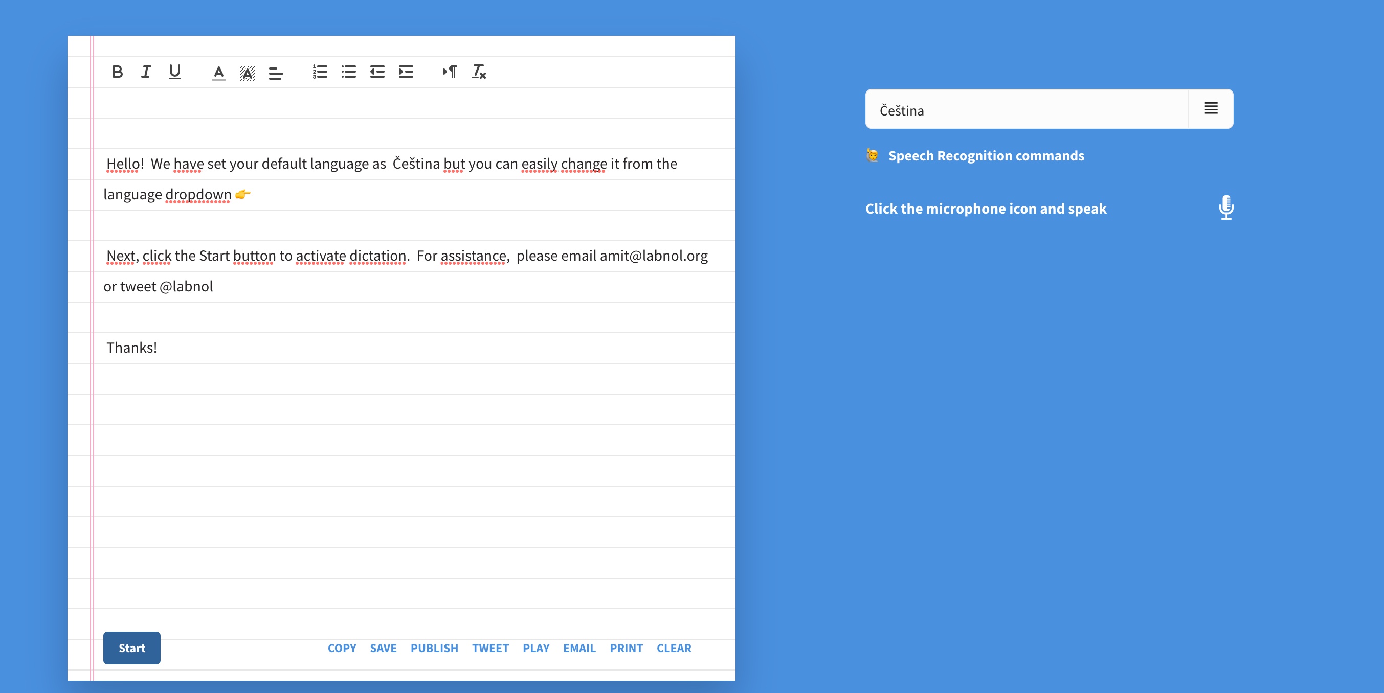 Připadá vám diktování podstatně pohodlnější než manuální psaní, případně jste momentálně na diktování odkázáni, ať už z jakéhokoliv důvodu? Pak určitě využijete web Dictiation.io. V jednoduchém uživatelském rozhraní zde zkrátka jen zadáte požadovaný jazyk, a poté můžete směle začít diktovat do připraveného online dokumentu. Vámi diktovaný text můžete na daném webu rovnou upravit nebo sdílet různými způsoby.