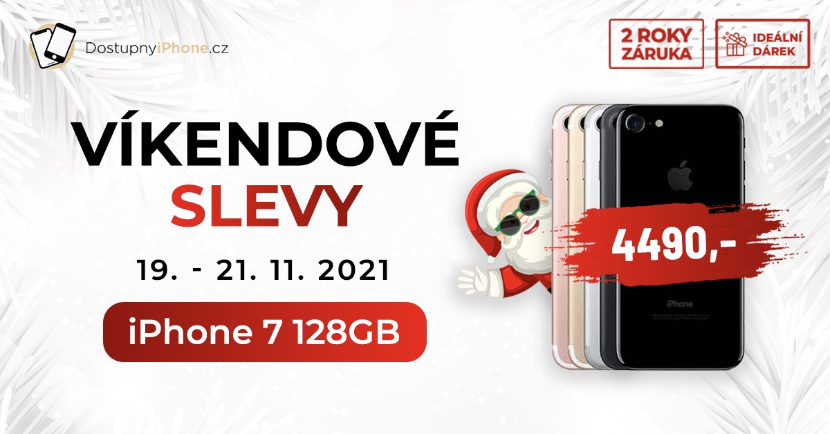 Komerční sdělení: Spolu s víkendem přichází i obrovská slevová akce! Nyní máte skvělou příležitost k pořízení oblíbeného iPhone 7 128GB za pouhých 4 490 Kč, což je mimochodem nejnižší cena na českém trhu. Jedná se o model s perfektním výkonem, softwarovou podporou a perfektně kompaktním tělem, které skvěle padne do ruky. Navíc se také jedná o ideální volbu pro milovníky Touch ID – jednoduše stačí přiložit prst a telefon se vám v mžiku odemkne. S nákupem ale raději neotálejte! Tato exkluzivní nabídka totiž platí pouze do 21. listopadu.