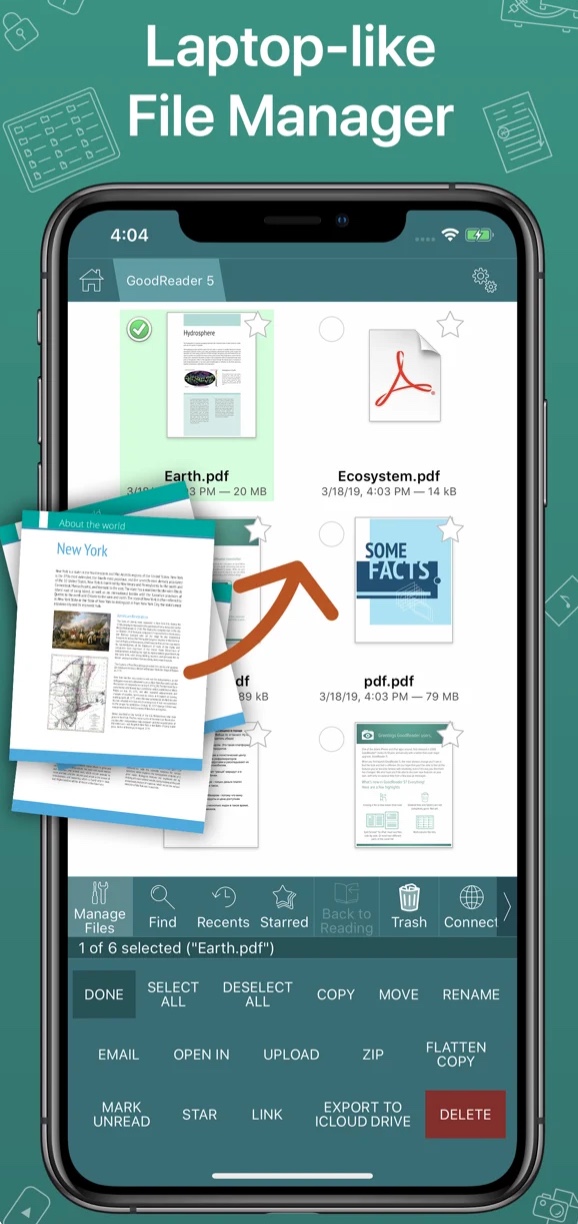 Aplikace Good Reader představuje skvělý a efektivní nástroj k práci se soubory. Můžete ji využít ke čtení a správě dokumentů ve formátu PDF, ale také pro práci se soubory v ostatních formátech. Good Reader si poradí se soubory ve formátu Office, HTML, s multimediálními soubory a spoustou dalšího. Umožňuje jejich nahrávání, stahování i synchronizaci, a spolupracuje také s řadou cloudových úložišť.