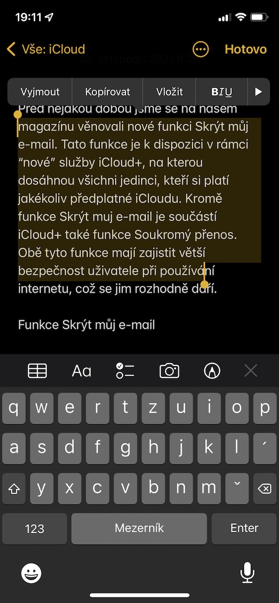 Jednoduše lze prostřednictvím funkce táhni a pusť také jednoduše pracovat s textem. Pokud byste se rozhodli pro sdílení nějakého textu, tak byste jej zajisté nejspíše prvně označili, poté pomocí tlačítka zkopírovali a nakonec se přesunuli do konkrétní aplikace, kde byste jej vložili a odeslali. Text však můžete sdílet také prostřednictvím táhni a pusť. Stačí, abyste si jej označili, a poté na něm chvíli podrželi prst. Následně stačí, abyste se prstem druhé ruky přesunuli tam, kam potřebujete a text sem vložili. Táhni a pusť lze v tomto případě využít například v Safari, Poznámkách a prakticky kdekoliv jinde, kde můžete text zkopírovat.