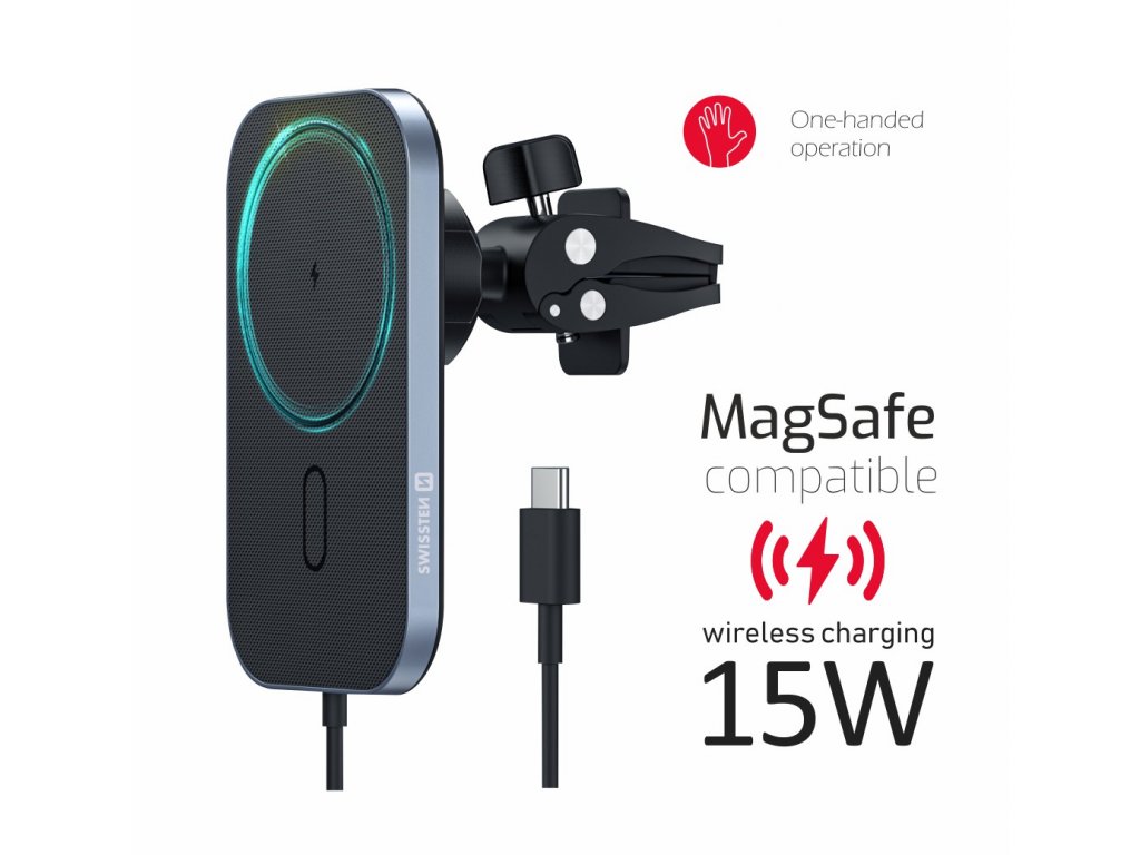 SWISSTEN magnetický držák s bezdrátovou nabíječkou