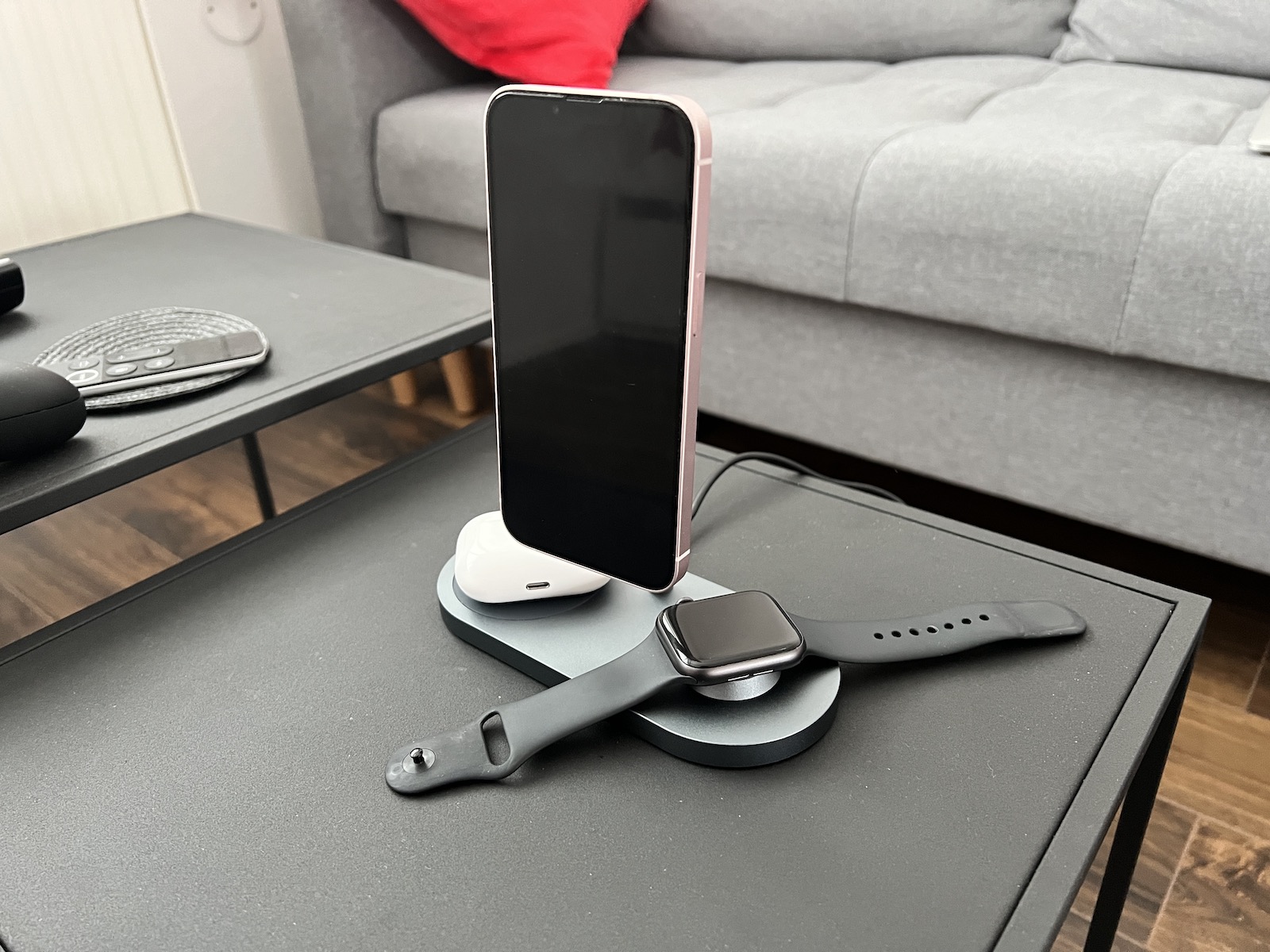 Abych byl upřímný, nemyslím si, že tyto typy nabíječek využívá někdo jinak než k nabíjení AirPods, iPhonů s MagSafe a Apple Watch, byť by díky Qi v základně samozřejmě mohl. Při testování jsem se proto rozhodl jít stejnou cestou a nabíječku otestovat pomocí mého iPhonu 13 Pro Max, AirPods Pro a Apple Watch Series 5. A musím říci, že obstála na výbornou.