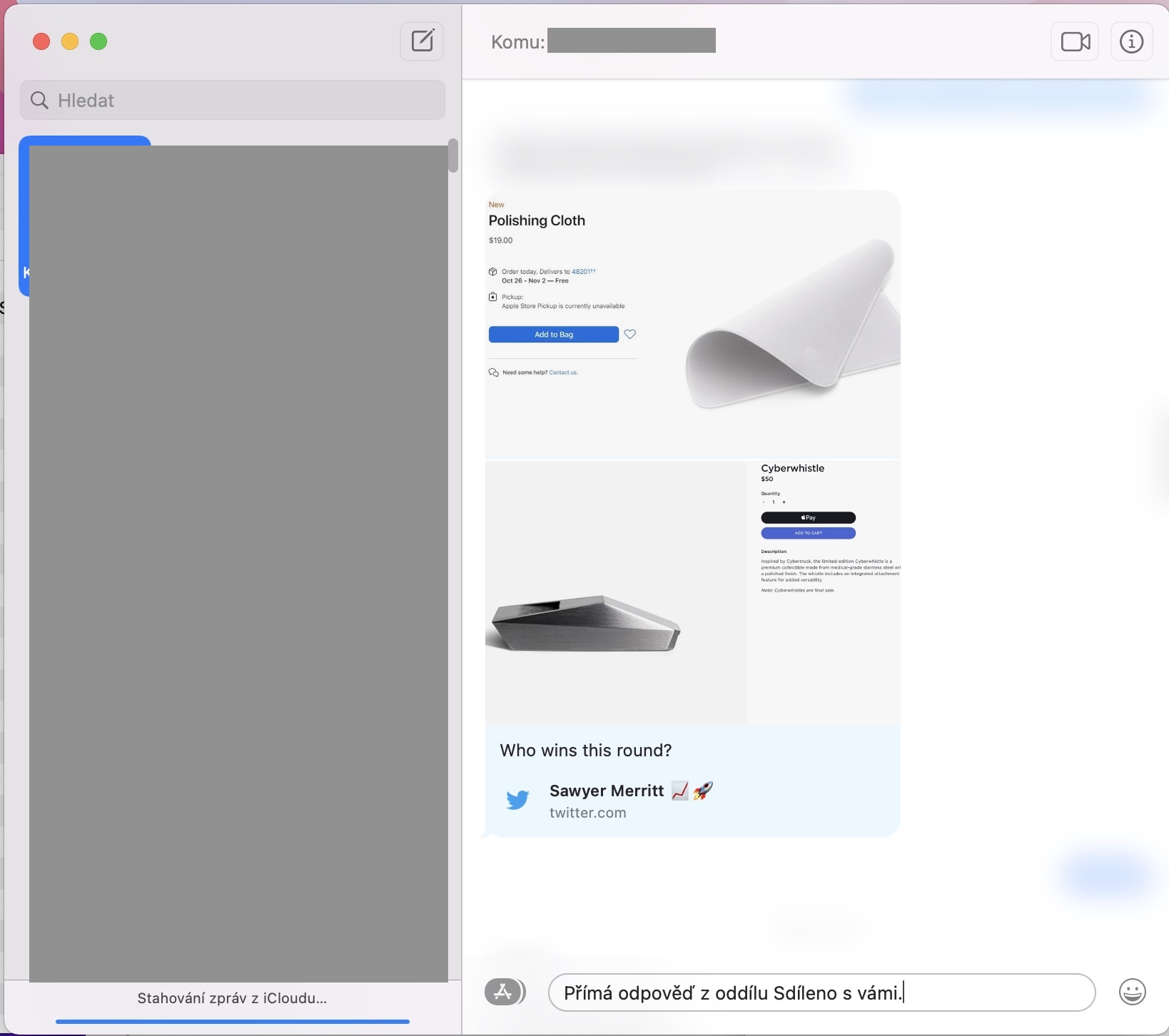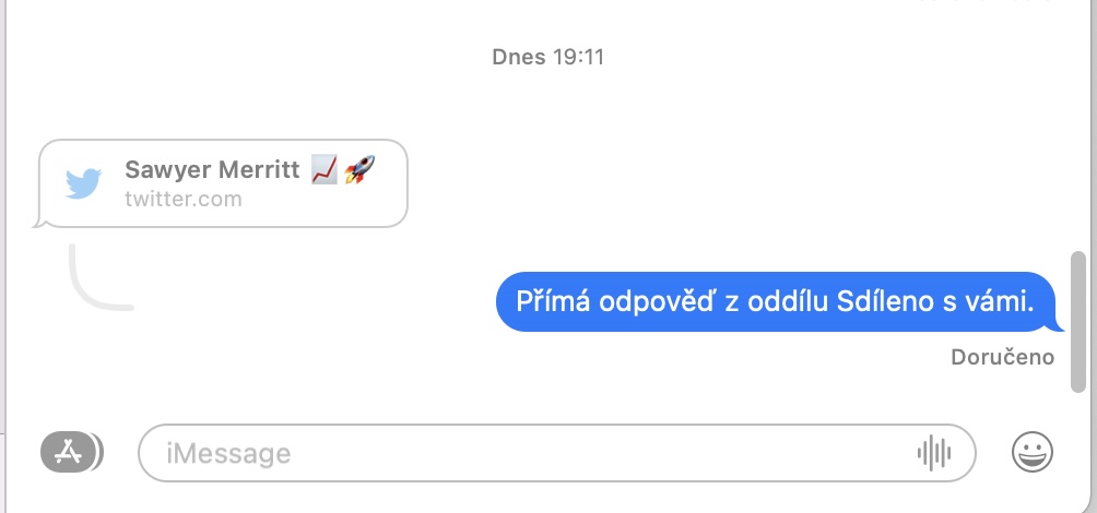 Pokud se přesunete do jedné ze zmíněných aplikací, kde je aktuálně oddíl Sdíleno s vámi k dispozici, tak se vám pod náhledem obsahu objeví také jméno uživatele, který s vámi konkrétní obsah sdílel. Díky tomu je možné jednoduše identifikovat, kdo s vámi obsah sdílel. Pokud ale na tento řádek se jménem dotyčného klepnete, tak se automaticky přesunete do aplikace Zprávy, kde budete schopni přímo reagovat na konkrétní obsah. Po klepnutí se vám ve Zprávách obsah zobrazí a do textového pole bude stačit napsat odpověď, kterou chcete, jakožto reakci, odeslat.