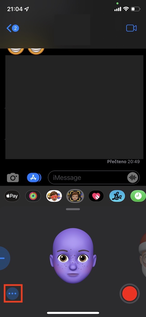 - Následně ve spodní části obrazovky v panelu s ikonami najděte Memoji, na které klepněte.