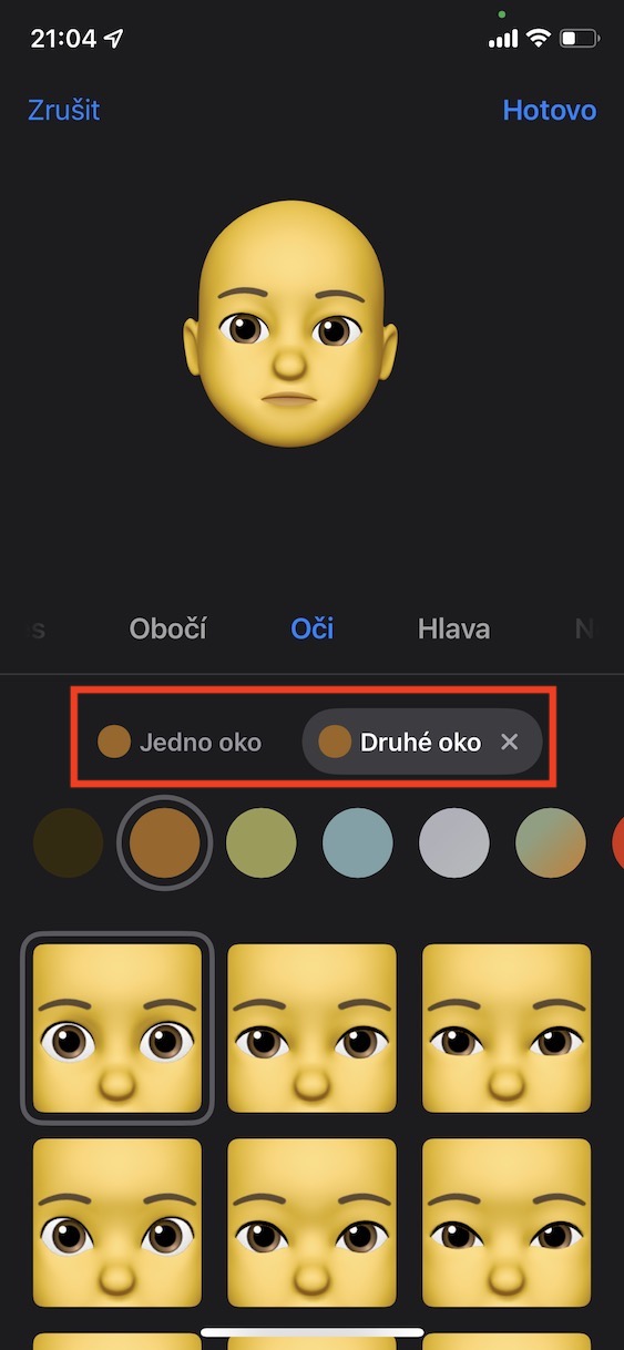 Jak na iPhone v Memoji nastavit odlišnou barvu očí