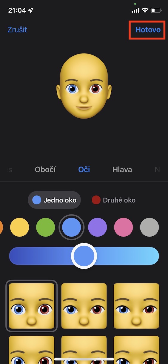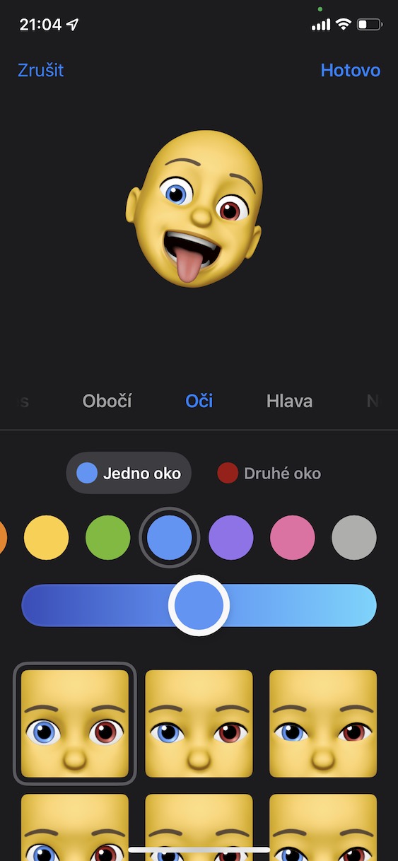 Co si však budeme nalhávat, většinu obyčejných uživatelů nezajímá, jakým způsobem nějaká funguje funguje – jde pouze o to, aby fungovala, jak měla. Vzhledem k tomu, že je TrueDepth kamera opravdu komplexní, tak se Apple rozhodl její možnosti odprezentovat prostřednictvím Animoji, později Memoji. Zajisté většina z vás Memoji zná – jedná se o jakési virtuální postavičky či zvířata, které si můžete vytvořit podle vlastního gusta, a poté na ně v reálném čase přenášet veškeré emoce. Pokud se tedy třeba zamračíte, tak se Memoji zamračí apod. Co se týče možností přizpůsobení, tak Memoji za poslední dobu ušli opravdu dlouhou cestu. V iOS 15 si můžeme konečně nastavit kromě tváře a všeobecně hlavy i oblečení. K dispozici je každopádně i možnost pro nastavení odlišné barvy očí, což se hodí všem uživatelům, kteří mají heterochromii očí. Odlišné barvy očí u vašeho Memoji můžete nastavit následovně: