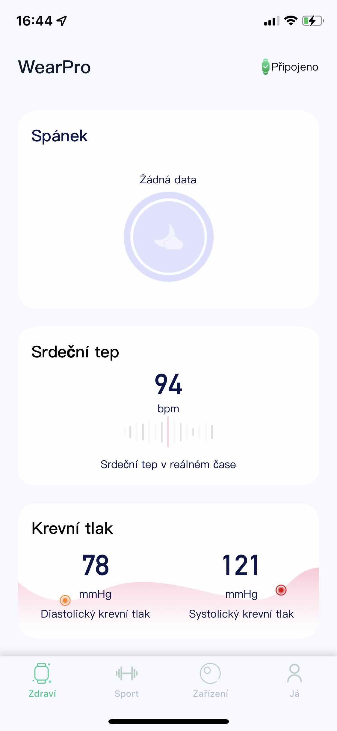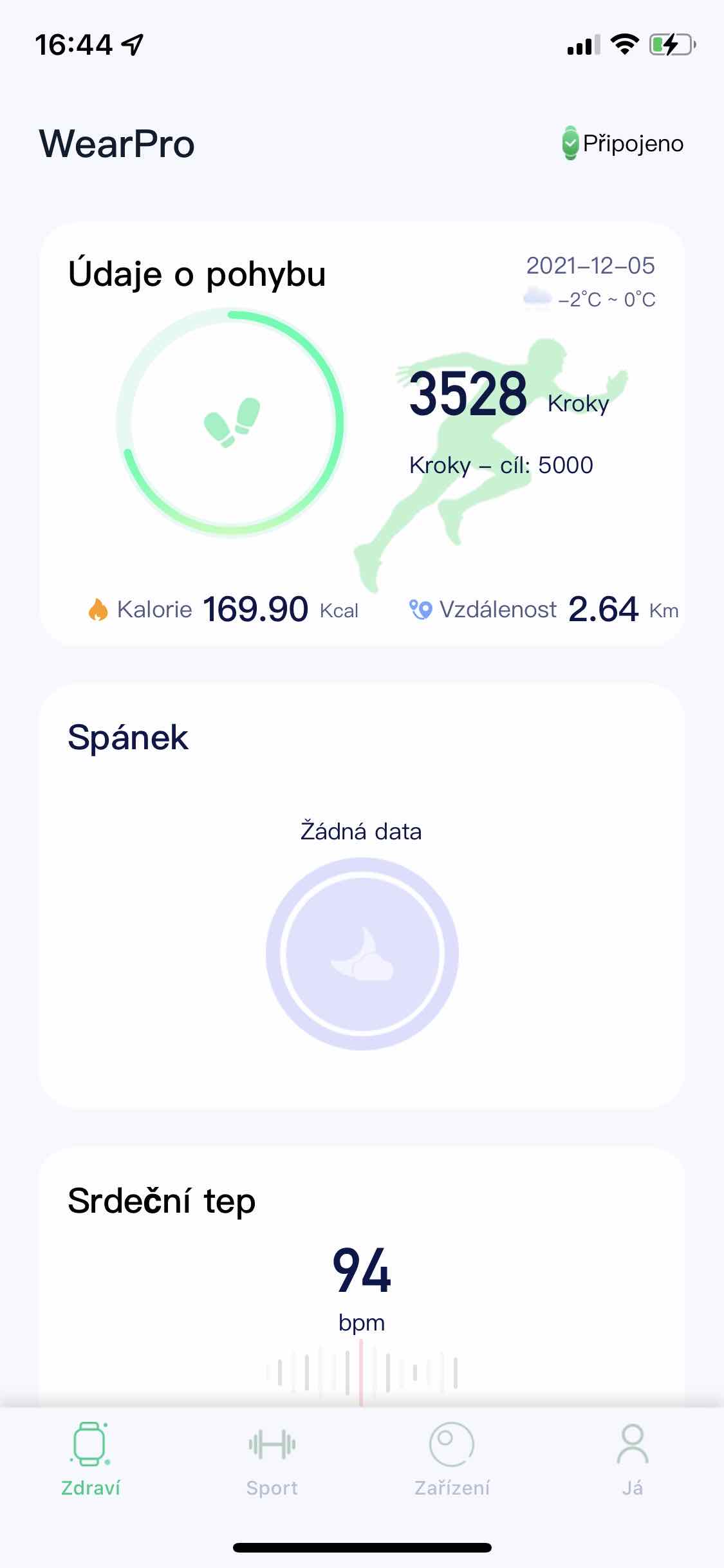 Samotné hodinky jsou ale samozřejmě k ničemu, jelikož v takovém případě by nebyly tak úplně chytré. Přesně proto je nutné je propojit s příslušnou aplikací v mobilním telefonu, což zde zastává program WearPro. Ten je pochopitelně zdarma a musím u něj pochválit jeho jednoduché uživatelské prostředí. Na jednom místě tak máme přehled o všech našich statistikách. Zároveň je možné zde nastavovat samotné hodinky, měnit jim ciferník a podobně. Co všechno WearPro ukazuje a umožňuje naleznete v galerii po boku tohoto odstavce.