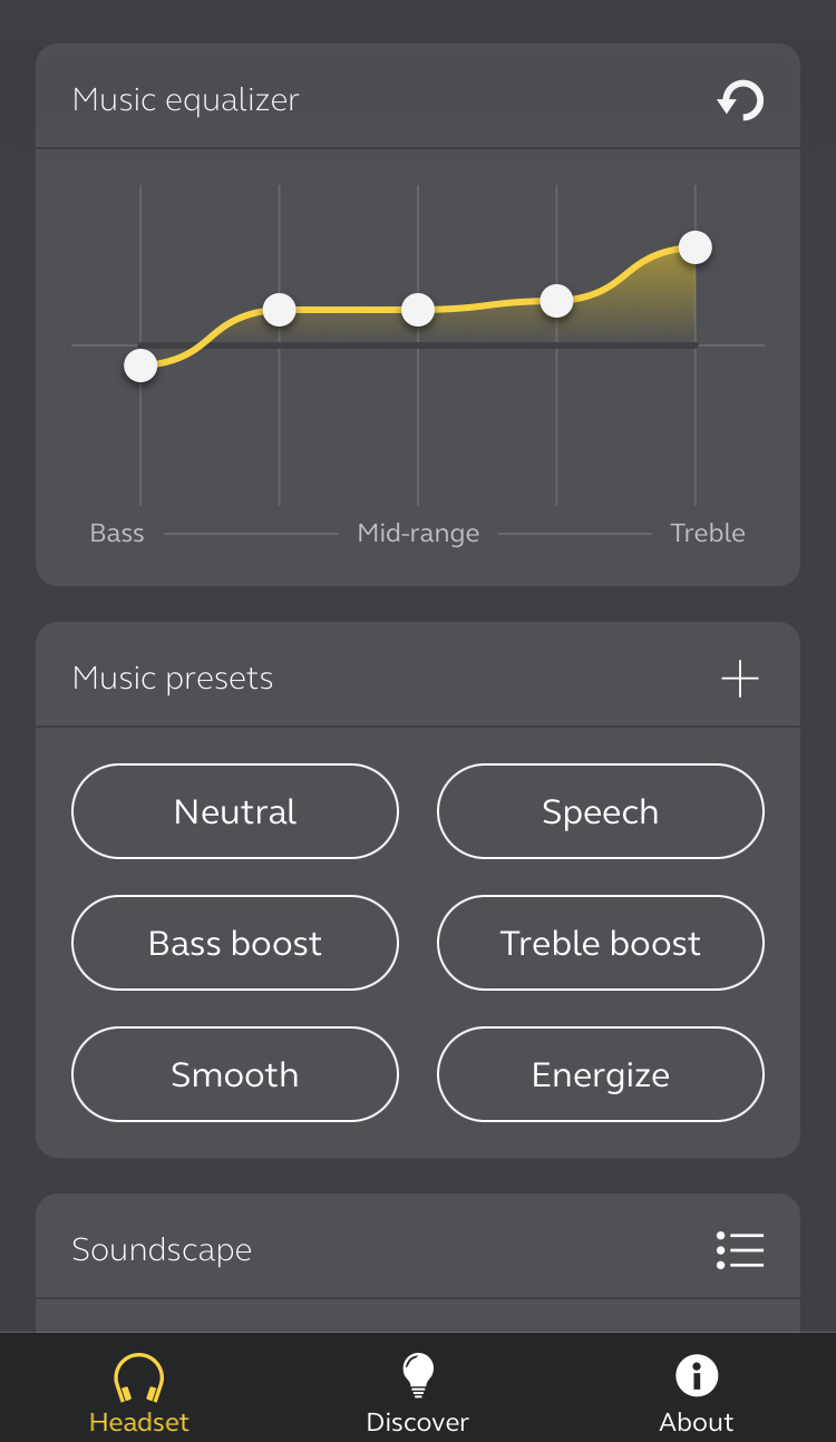 ANC se musí v aplikaci nejprve nastavit, a to zejména s ohledem na jeho intenzitu. Po správném nastavení je funkce zpřístupněná a je možné ji libovolně zapínat (či znovu upravovat její nastavení). Kromě základního přehledu o stavu sluchátek aplikace nabídne pětipásmový ekvalizér, šestici přednastavených presetů a možnost vytvoření vlastního. Dalším velmi příjemným doplňkem jsou tzv. Soundscapes, které nabízí celou řadu ambientního zvuku, od klasického white/pink noise, zvuk průmyslového ventilátoru, ale i přírodní zvuky například vodopádu, deště, bouřky, tekoucí vody a mnoha dalších možností, které ocení především ti, kteří podobné zvukové kulisy potřebují třeba pro soustředění nebo pro spánek. Aplikace je tedy velice povedená, nabízí celou řadu zajímavých funkcí a na rozdíl od jiných (Sony!) je přehledná a dobře se s ní pracuje.