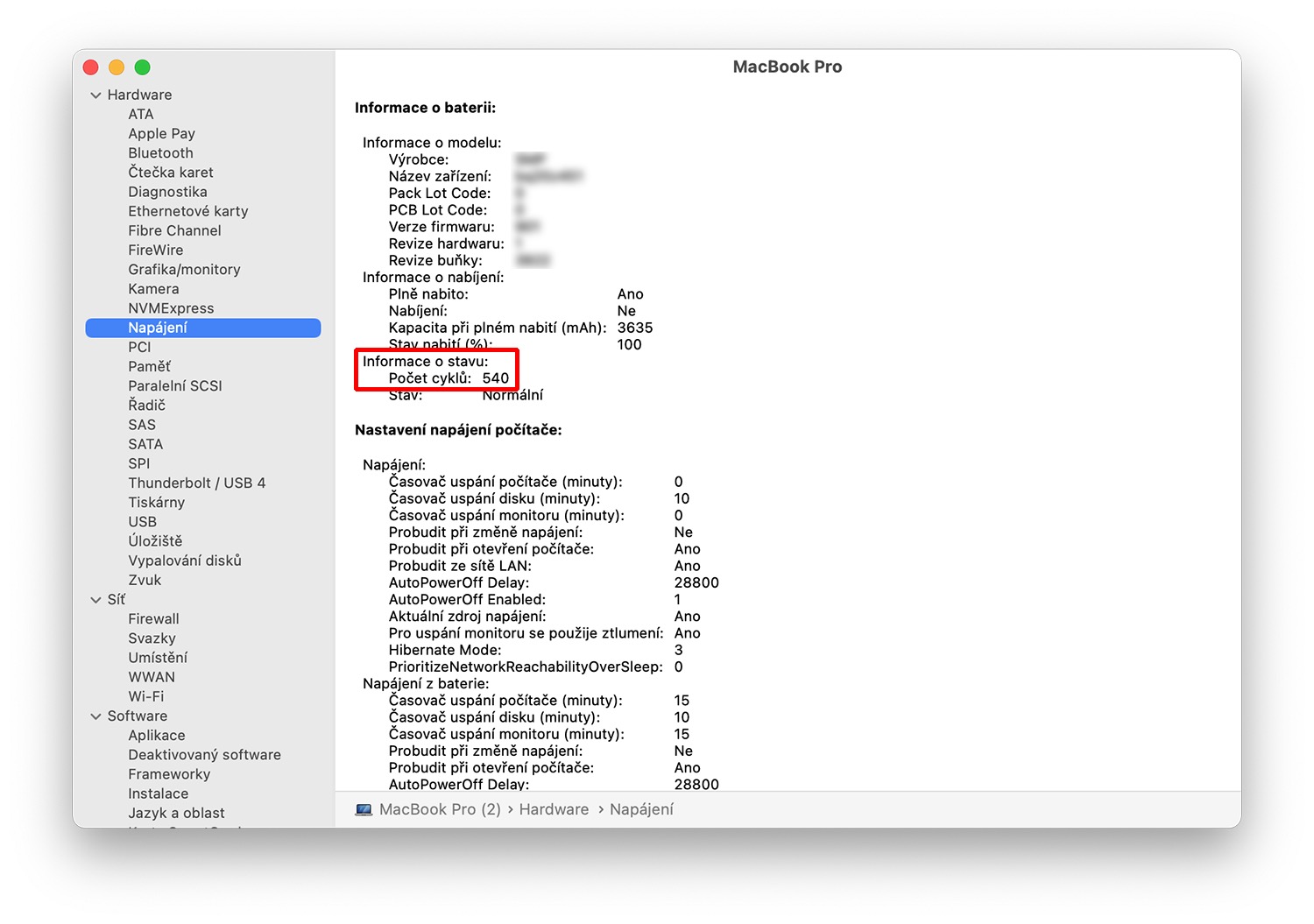 Počet cyklů baterie Mac