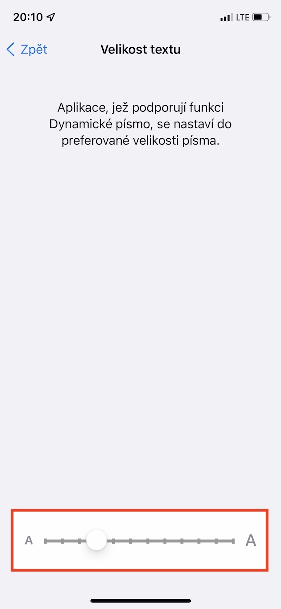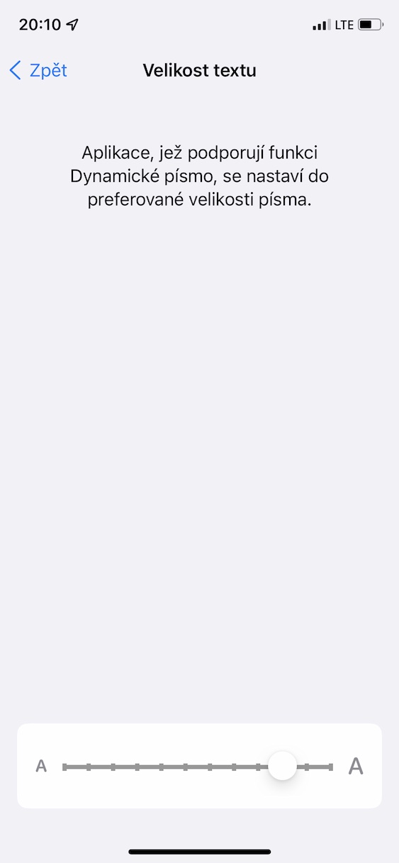 Ve výchozím nastavení iOS je zvolena taková velikost písma, která vyhovuje většině uživatelům. Pokud ale iPhone využívá někdo starší, popřípadě naopak někdo mladší, tak by mohl chtít velikost změnit. Starší lidé by mohli uvítat zvětšení, mladší uživatelé pak naopak zmenšení, aby na displeji mohli najednou vidět více obsahu. Změnu písma samozřejmě v rámci iOS provést můžete, a to tak, že přejdete do Nastavení -> Zobrazení a jas -> Velikost textu, kde si jej pomocí posuvníku zvolte. Popřípadě je možné text změnit zvlášť pro každou aplikaci – viz tento článek.