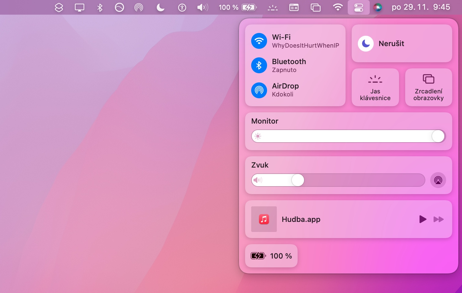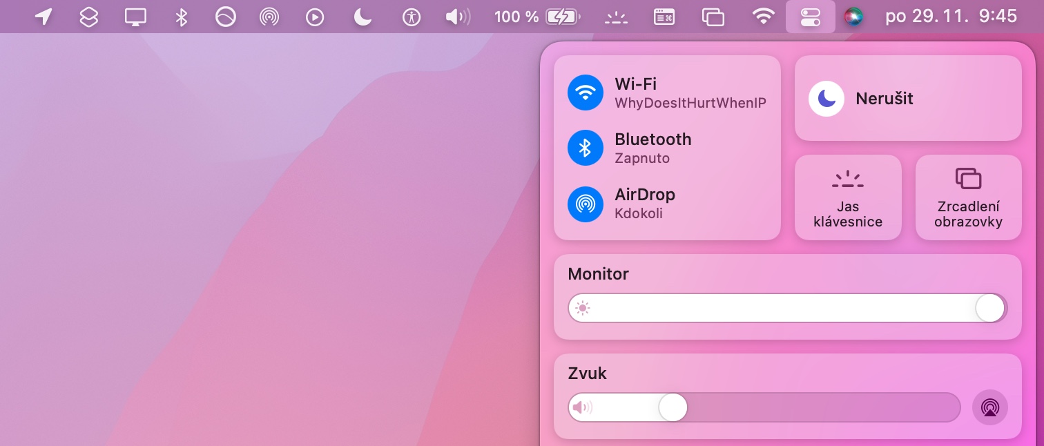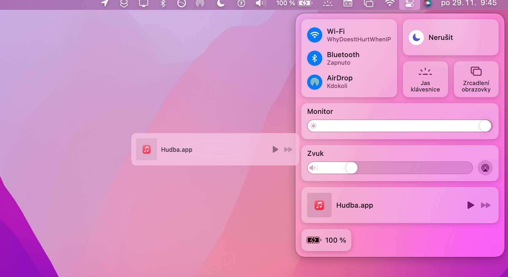 Ovládací centrum najdete na Macu na pravé straně lišty nabídek v horní části obrazovky displeje vašeho počítače – jedná se o ikonku dvou posuvníků. V samotném Ovládacím centru na Macu pak podobně jako na iPhonu či iPadu najdete nejrůznější prvky, s jejichž pomocí můžete rychle a snadno ovládat hlasitost, síťové připojení nebo třeba přehrávání médií na vašem Macu.