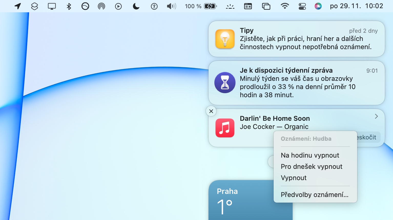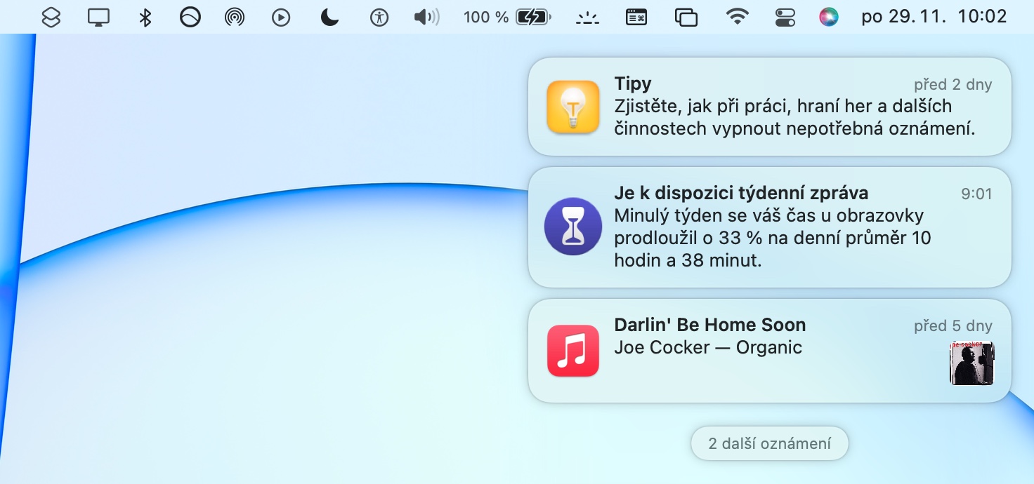 Oznamovacím centrem na Macu se budeme zabývat i v našem posledním dnešním tipu. Máte zrovna odpočinkový den a chtěli byste si dočasně vypnout notifikace z pracovního e-mailového účtu? Žádný problém. Kliknutím na údaje o čase v pravém horním rohu obrazovky vašeho Macu aktivujte Oznamovací centrum. Poté vyberte aplikaci, u které chcete upravit notifikace, klikněte na příslušnou notifikaci pravým tlačítkem myši a zvolte dobu, po kterou chcete dané notifikace vypnout. Pro detailnější správu notifikací klikněte na Předvolby oznámení.