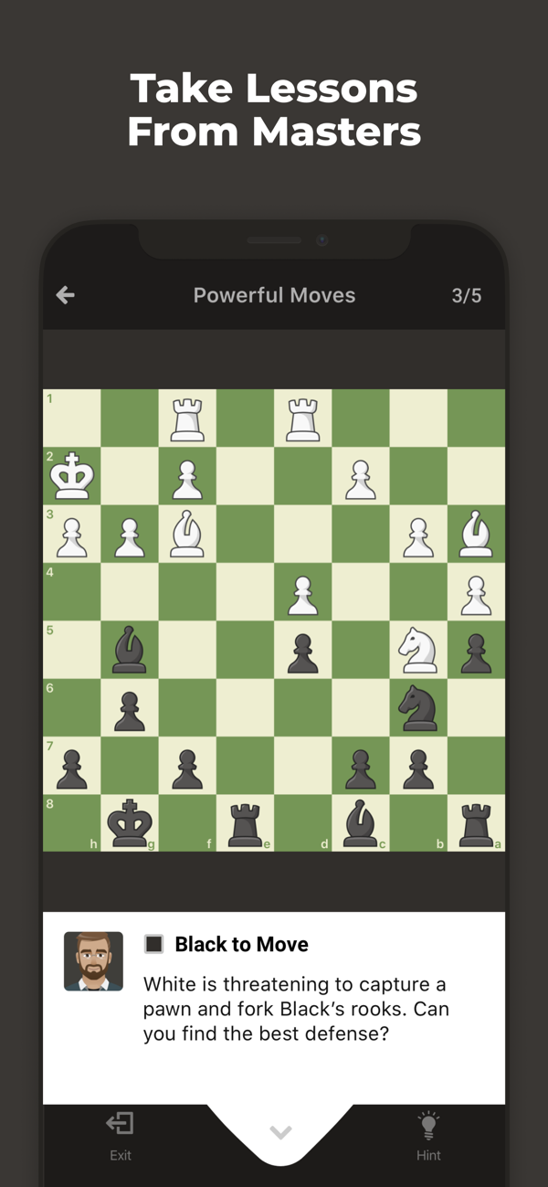 Jak lépe trávit dlouhé zimní večery, než nad partií šachu? Jistě, možná by to bylo lepší tváří v tvář, ale pandemická situace tomu nemusí příliš nahrávat. Ať jste tedy kdekoli, můžete rozehrát svou hru i na zápěstí. To nejenom proti umělé inteligenci, ale také proti jakémukoli hráči na světě. Grafické rozhraní je samozřejmě maximálně jednoduché, avšak také účelné. Nechybí dokonce množství výukových lekcí, které se vás v umění této královské hry pokusí zdokonalit.