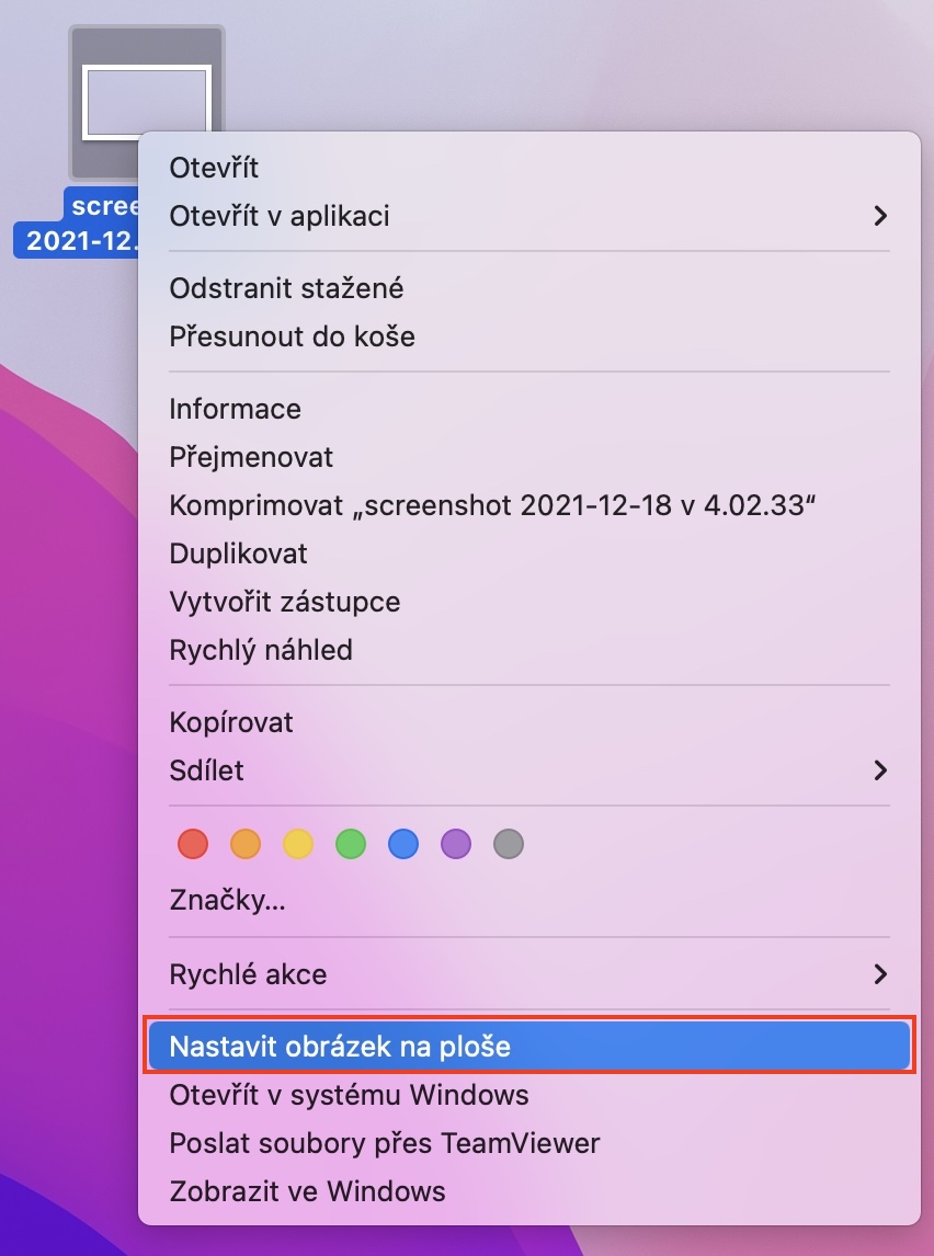 Ve výchozím nastavení se na plochu vašeho Macu nastaví tapeta, se kterou Apple přišel v nejnovějším macOS. Tyto nativní tapety jsou samozřejmě parádní a pěkné, každopádně rozhodně nemusí vyhovovat každému. Tapetu si samozřejmě můžete velice jednoduše změnit. Stačí, abyste si našli obrázek, který chcete jako tapetu nastavit, a poté na něj klepněte pravým tlačítkem. Následně z menu vyberte možnost Nastavit obrázek na ploše. Pokud byste chtěli zobrazit ostatní nativní tapety, tak stačí přejít do → Předvolby systému → Plocha a spořič, kde si nalevo novou tapetu můžete jednoduše vybrat.