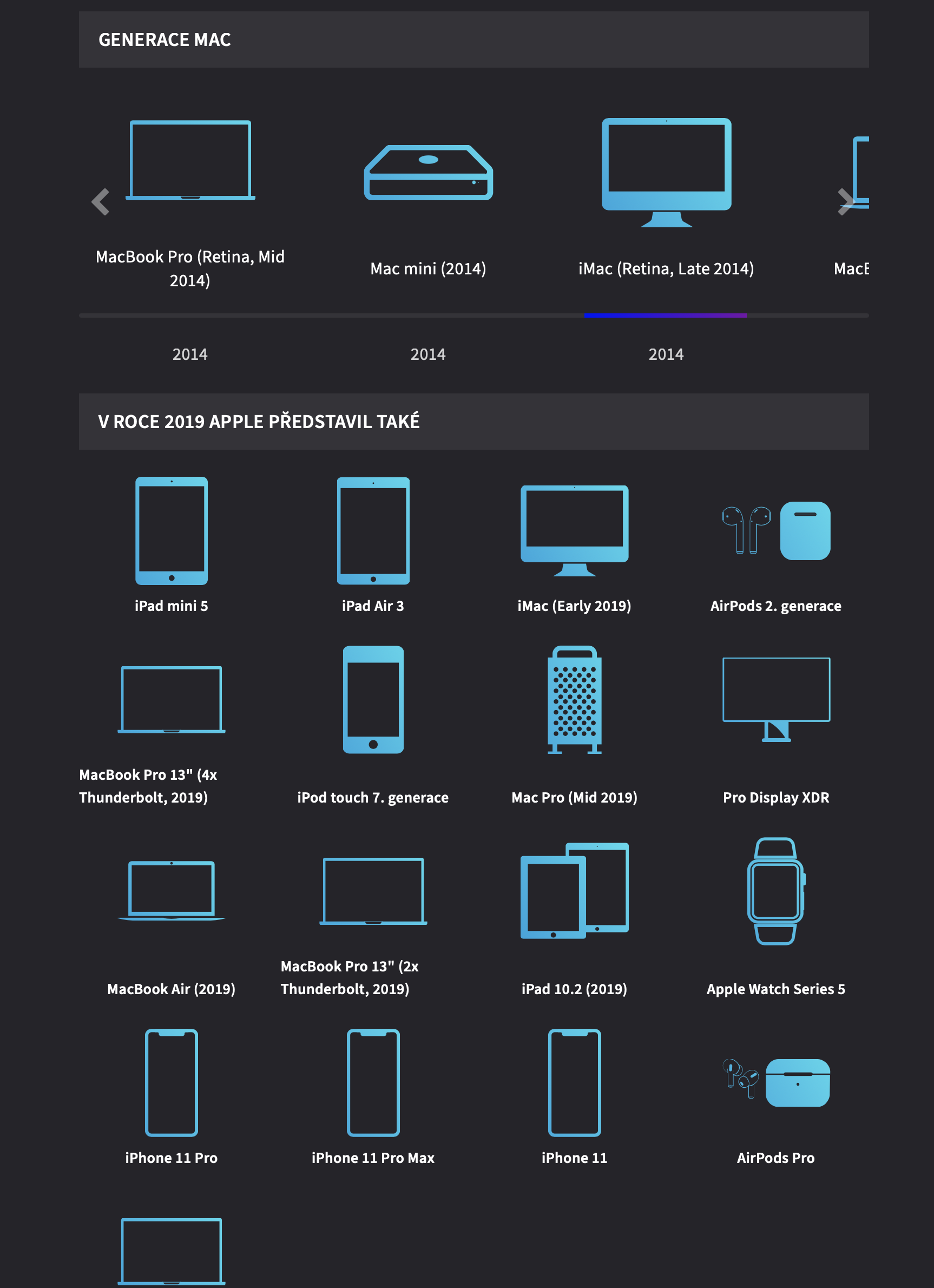 Apple Katalog budeme samozřejmě pravidlně rozšiřovat o nové produkty a také během nejbližší doby doplníme nejzásadnější příslušenství a operační systémy včetně odkazů na jejich stažení. Věříme, že se vám bude katalog líbit a stane se vašim rádce ve chvílích, kdy budete potřebovat o nějakém produktu najít, co vás jen napadne.