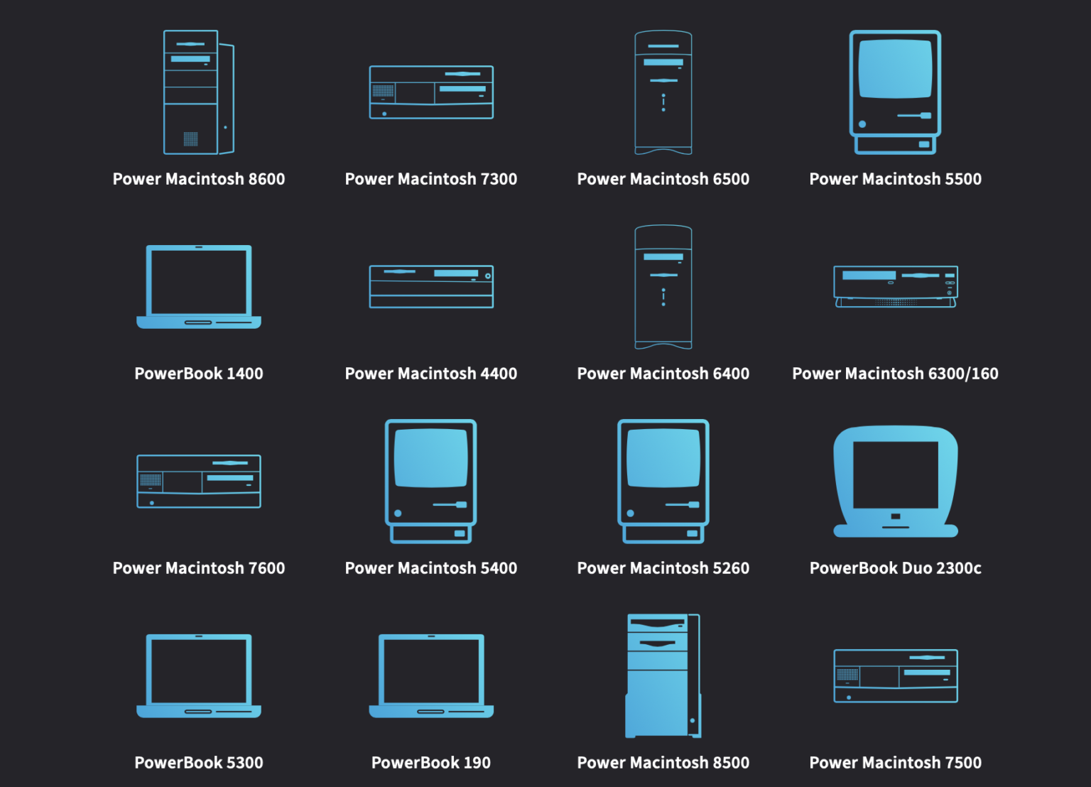 Ešte som si všimol taký detail – Mac Pro 2010 a 2009 mali dizajn ako 2012 – mali by mať aj takú ikonu, ale majú pridelenú ikonu z modelu 2019 s tými okrúhlymi geometrickými útvarmi (strúhadlo na syr).