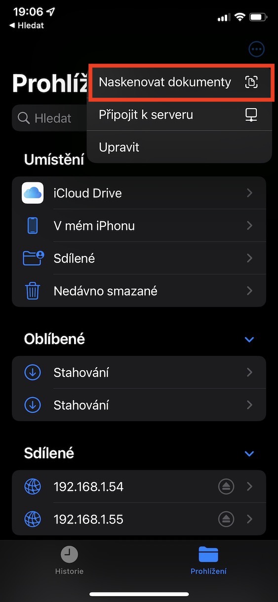 - Tímto se vám zobrazí malé menu, ve kterém stiskněte možnost Naskenovat dokumenty.