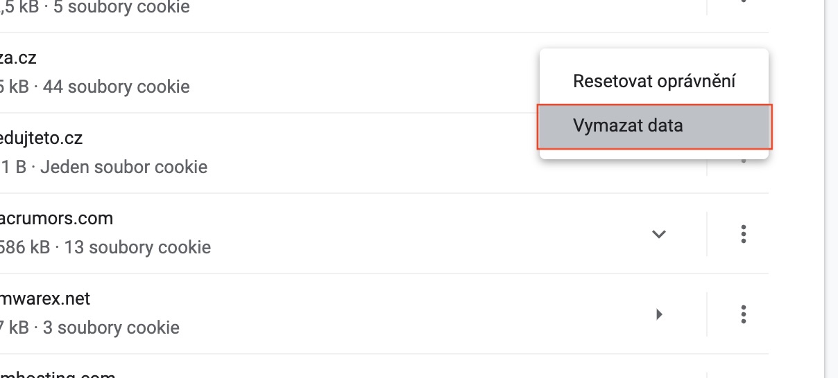Pomocí výše uvedeného postupu je tedy možné v Google Chrome na Macu smazat data, která o vás sbírají webové stránky. Pro smazání dat z jedné stránky u ní klepněte napravo na ikonu tří teček a klepněte na Vymazat data, pro smazání všech dat stačí klepnout na tlačítko Vymazat všechna data. Abyste tuto možnost v nastavení prohlížeče našli, tak znova podotýkám, že je nutné mít nainstalovaný Google Chrome ve verzi 97 a novější – v opačném případě byste hledali marně. Smazáním cookies a dalších dat můžete ušetřit klidně stovky megabajtů v úložišti.