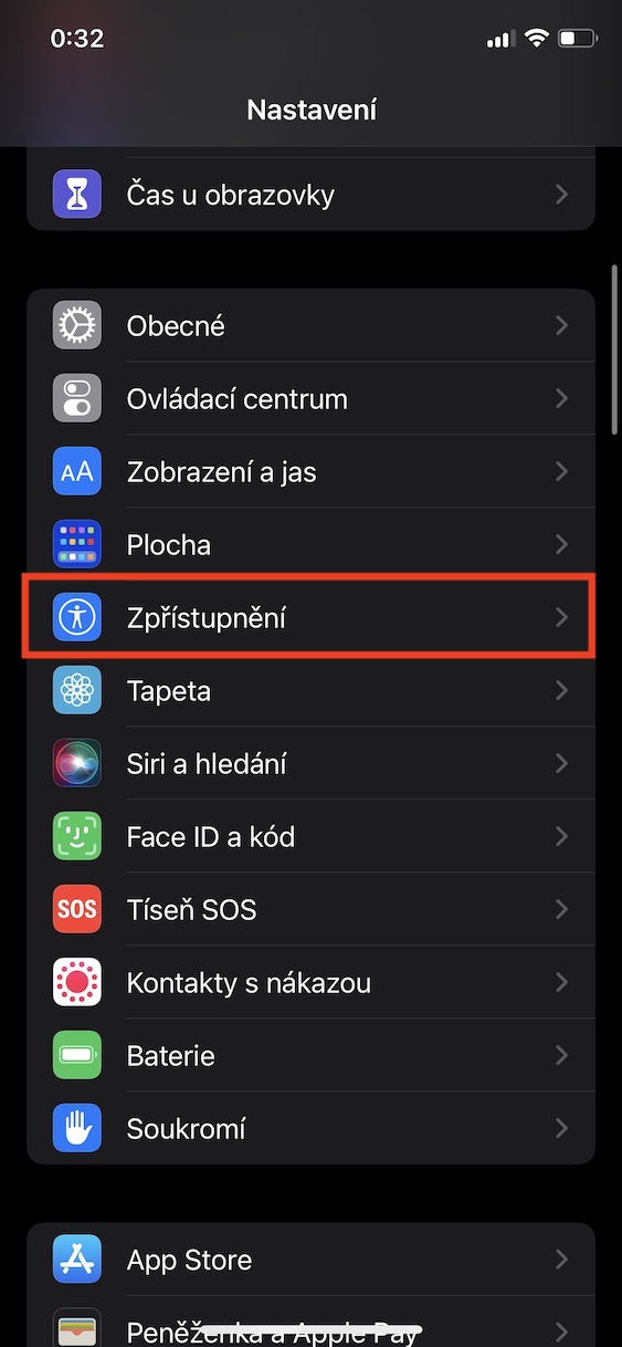 - Zde pak sjeďte o něco níže, kde najděte a lokalizujte kolonku Zpřísutpnění.