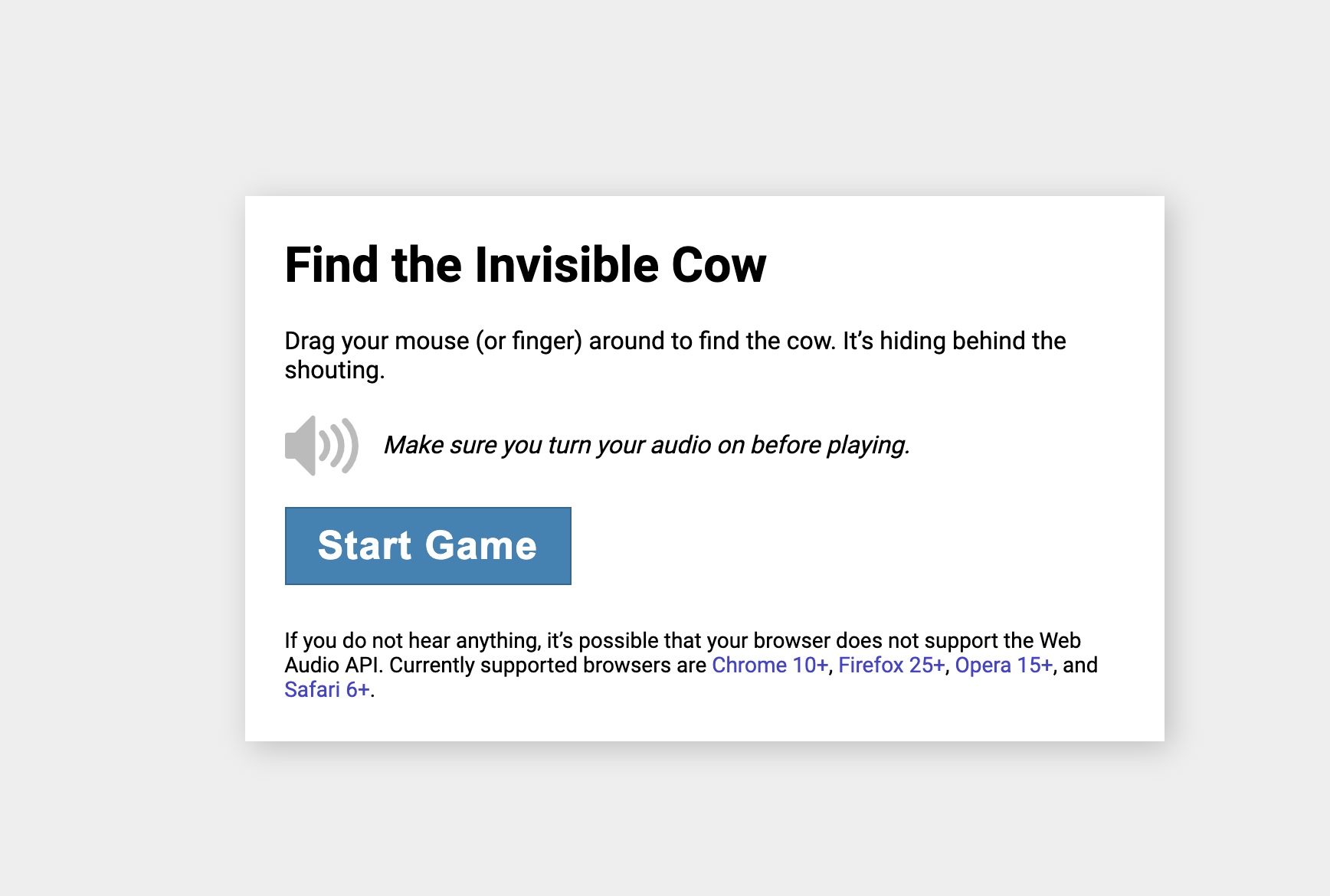 Web Find the Invisible Cow si můžete vyzkoušet zde.