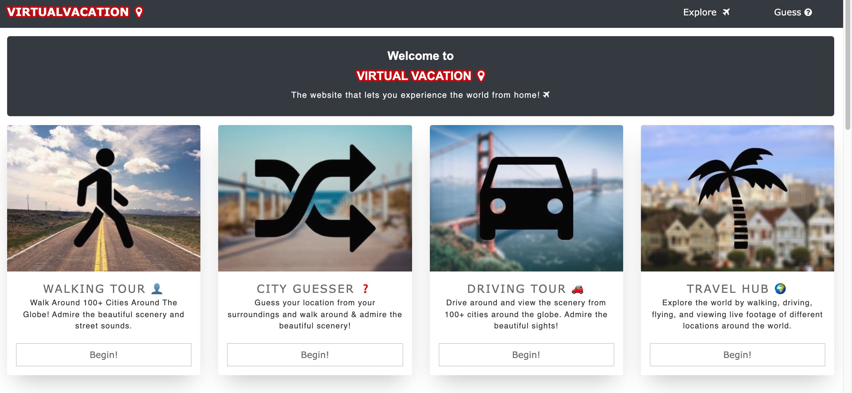 Milujete cestování, dobrodružství a překvapení? To vše vám – byť jen ve virtuální podobě – nabídne webová stránka s názvem Virtual Vacation. Najdete zde například hru s názvem City Guesser, ve které budete muset hádat město, v němž jste se právě ocitli. Web ale nabízí spoustu jiných zajímavých funkcí, jako jsou třeba virtuální výhledy z oken lidí po celém světě, virtuální projížďky po světě nebo virtuální lety, při kterých si můžete vybrané destinace prohlédnout z ptačí perspektivy.