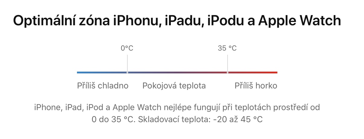 Při nabíjení baterie samozřejmě vzniká teplo, které však není bůhvíjak velké, tudíž prakticky nijak zdraví baterie neohrozí. Problém je ale v tom, když se tohle teplo, které vzniká nabíjením, spojí s jiným teplem. Stačí například, abyste začali zařízení nabíjet v létě na přímém slunci, popřípadě abyste měli nasazený nějaký hrubý obal, kvůli kterému iPhone nebude schopen chladit. Baterie všeobecně nejlépe pracují v rozmezí od 0 do 35 °C, tudíž pokud dojde k zahřátí na vyšší teplotu, tak už to může mít na baterii špatný vliv. iPhone tedy vždy nabíjejte v chladu, a pokud využíváte nějaký hrubý obal, tak jej při nabíjení sundejte a ideálně nahraďte nějakým tenčím.