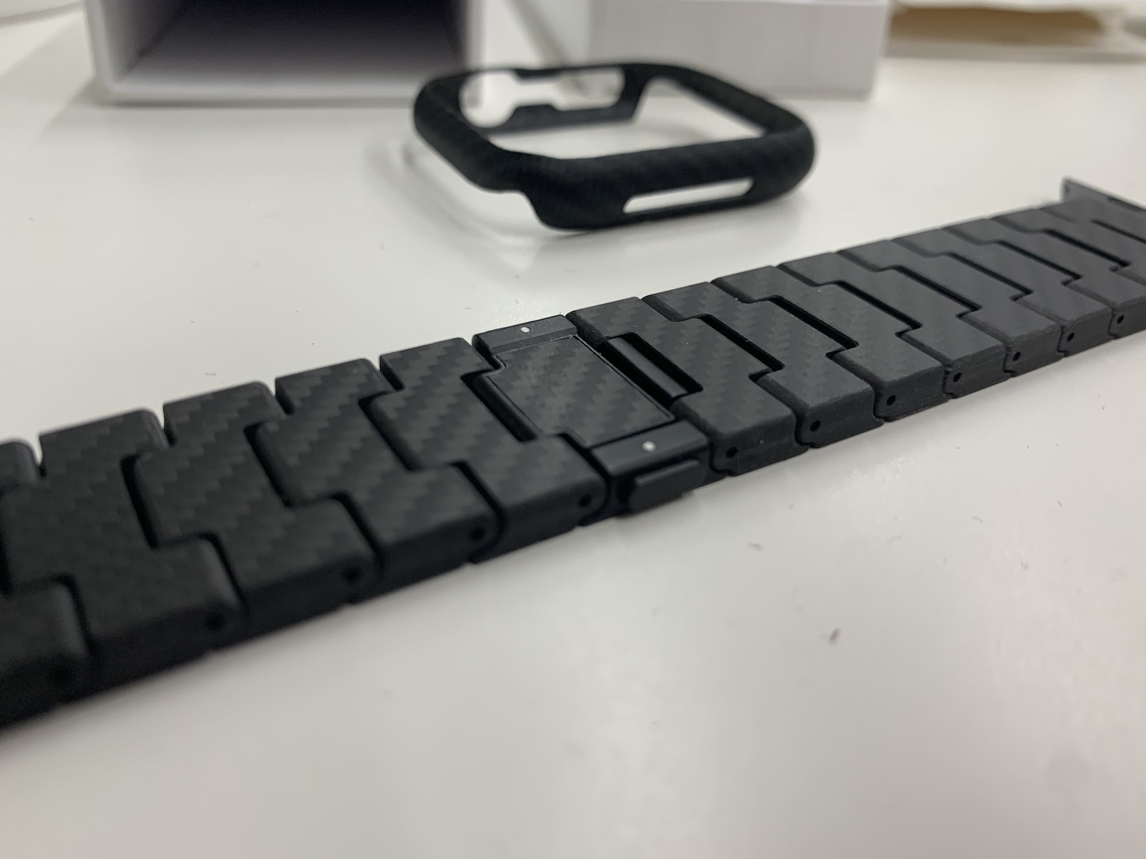 Pokud si kryt PITAKA na Apple Watch vezmete před instalací do ruky, tak se může zdát, že je křehký, a to především kvůli své lehkosti… ale vzhledem k tomu, že chrání pouze rámeček hodinek, tak nemůžete ani nic jiného čekat. Jakmile však kryt nacvaknete, tak zjistíte, že Apple Watch rozhodně zvládne ochránit, a to bez jakýchkoliv pochybností. Navíc k tomu, aramid je při stejné hmotnosti až 5x silnější než ocel, což opět potvrzuje kvalitu. Pokud ke krytu přidáte také řemínek, tak získáte naprosto elegantní kombinaci. Připravte se na to, že se vás známí rozhodně budou ptát na to, odkud vlastně kryt a řemínek máte, protože vypadá naprosto úžasně. Jak už jsem zmínil výše, tak řemínek je článkový, takže si musíte jeho délku nastavit podle vaší ruky. Pokud jste články nikdy nesundávali nebo naopak nepřidávali, tak vám bude chvíli trvat, než na systém přijdete. Jednak vám ale pomůže návod, a jednak po chvilce sami pochopíte, jak na to.