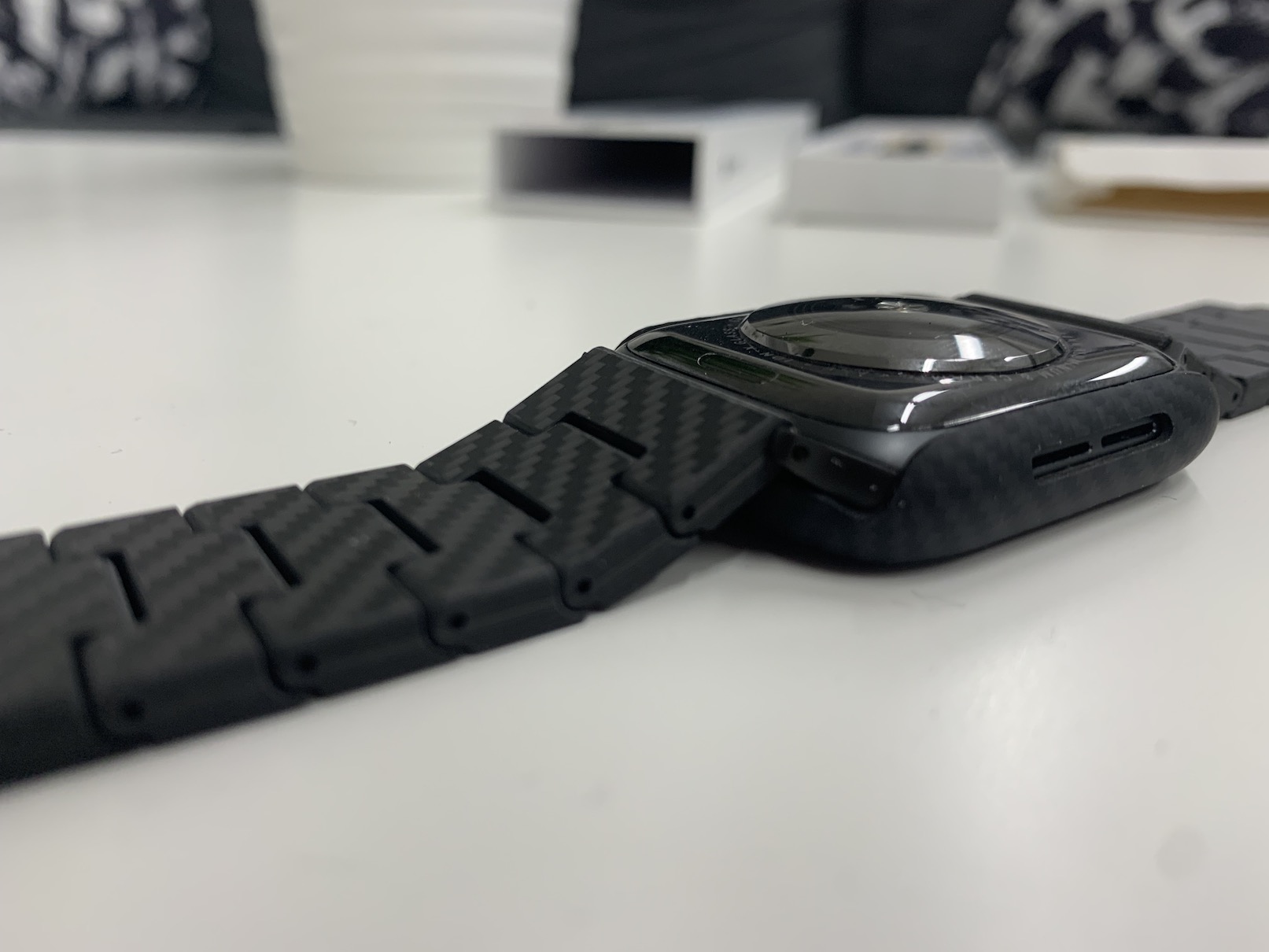 Kombinaci ochranného krytu a řemínku PITAKA jsem využíval zhruba celý jeden týden a musím říct, že jsem si oba produkty nesmírně zamiloval. Kompletně nimi totiž změníte vzhled Apple Watch, ze kterých se stane kus něčeho naprosto výjimečného. Oba dva produkty spolu naprosto perfektně ladí a byl by hřích si k obalu nezakoupit také řemínek PITAKA (či naopak). S nasazeným krytem se nemusíte bát toho, že byste hodinky nějakým způsobem nemohli pohodlně ovládat. Naopak vše probíhá prakticky zcela stejně, a to díky důmyslně vyřešeným otvorům pro ovládací prvky. Jediné, co s nasazeným obalem můžete poškodit, je digitální korunka, která i nadále vyčnívá. Museli byste být ale hodně „šikovní“, aby se vám to povedlo. U řemínku je nutné počítat s tím, že je prostě a jednoduše pevný a nepoddajný. Nehodí se tedy například ke sportování, naopak jej využijete třeba v práci, na večeři apod. Při psaní na počítači počítejte s tím, že s řemínkem budete škrtat po stole, popřípadě po těle MacBooku – opatrně tedy na poškrábání.