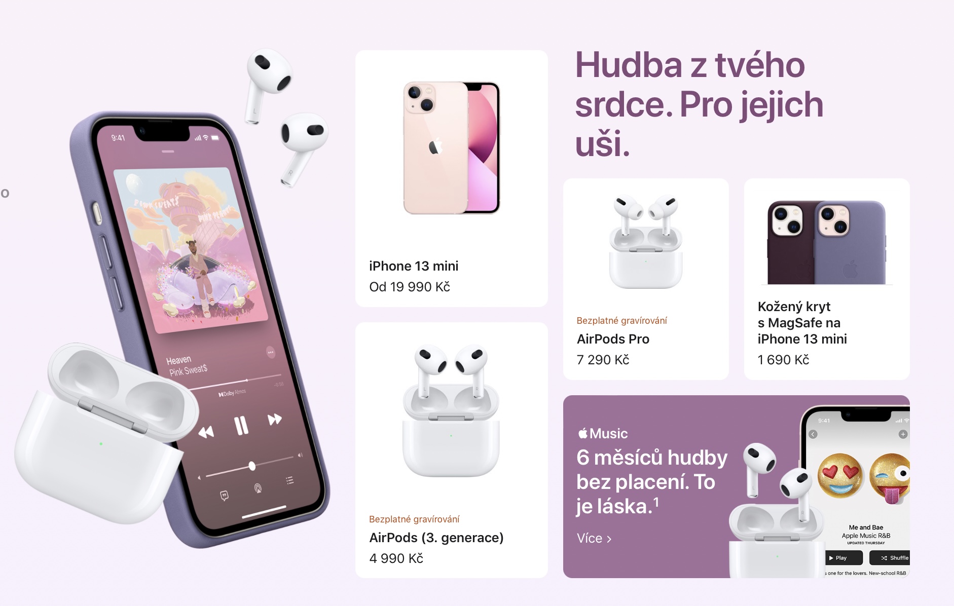 Bez jakékoliv nadsázky se dá říci, že je valentýnský dárkový rádce jen mírně graficky přepracovaným vánočním rádcem, který jsme měli možnost vidět před dobrým měsícem na Online Storu Applu. To jinými slovy znamená, že v něm najdete jen klasické produkty bez jakékoliv speciální valentýnské úpravy, které jsou jen graficky “načančány” tak, aby ladily do valentýnského konceptu doplněného spoustou líbivých hesel v čele s hláškami typu “Ať vám srdce bijou ve stejném tempu”, “Myslete jeden na druhého” či “6 měsíců hudby bez placení. To je láska”. Zcela standardní jsou pak samozřejmě i ceny, takže nepočítejte s tím, že u Applu zvládnete nyní nakoupit levněji. Pokud vás ale i přesto zajímá, jak si po grafické stránce nejhodnotnější technologická firma světa s podobnými věcmi hraje, určitě na mikrostránku Applu k Valentýnu mrkněte.