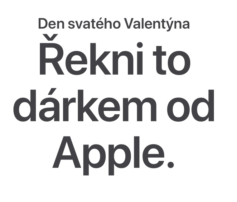 Valentýn je sice ještě relativně daleko, to však Applu nebrání v tom jej již nyní začít promovat kvůli navýšení prodejů jeho produktů. Děje se tak konkrétně přes jeho Online Store, který začal přes víkend nabízet novou valentýnskou mikrostránku s tipy na dárky pro vaše drahé polovičky. Nutno nicméně podotknout, že moc originální Apple není.