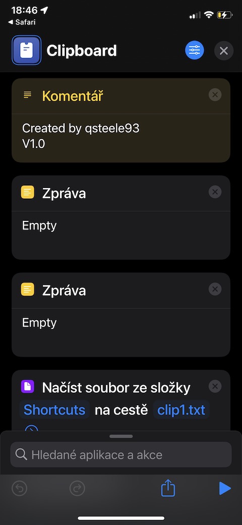 Pokud na svém iPhonu často pracujete s obsahem schránky, určitě se vám bude hodit tento užitečný pomocník. S pomocí tohoto nástroje můžete kopírovat texty do schránky, vkládat je na libovolné místo a měnit. Zkratka nabízí hned dvě volné schránky pro vámi zkopírovaný obsah.
