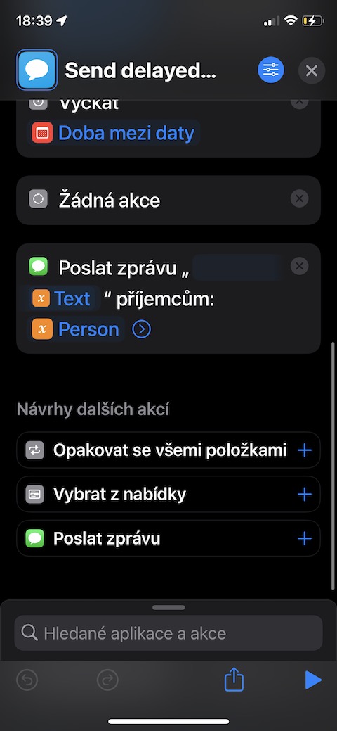 Potřebujete někomu napsat v určitý den a určitou hodinu, ale bojíte se, že na svůj úkol v danou chvíli zapomenete? Právě pro tyto případy skvěle poslouží zkratka s názvem Send Delayed Text. V jednoduchém menu zde postupně zadáte text zprávy, požadované datum odeslání a příjemce, potvrdíte, a už se dále nemusíte o nic dalšího starat – zkratka vše potřebné zařídí za vás.