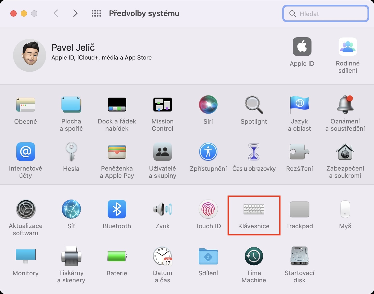 - V tomto okně nyní najděte a rozklikněte sekci s názvem Klávesnice.