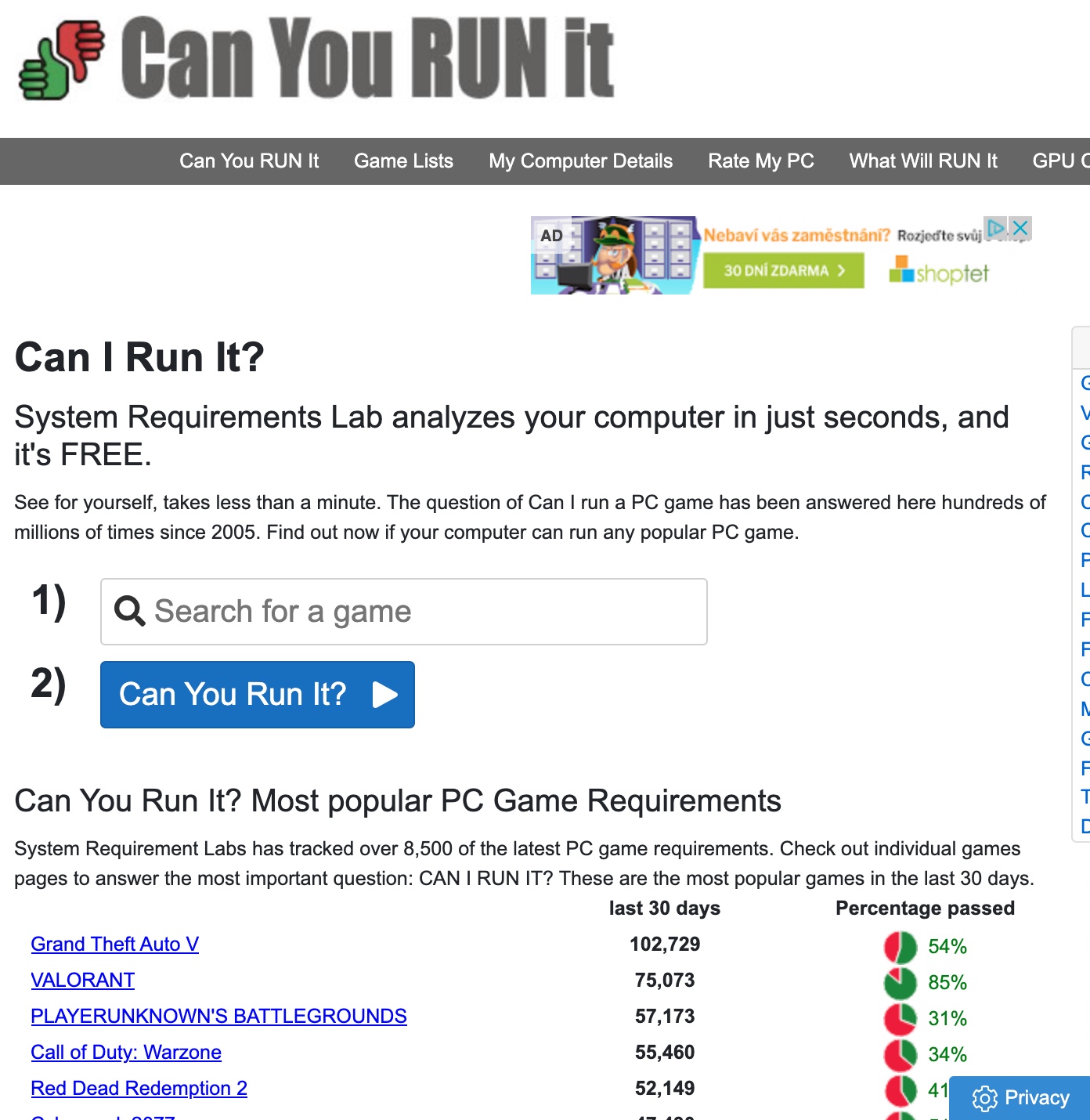 Chtěli byste si zahrát novou hru nebo vyzkoušet nový program, a nejste si jisti tím, zda si s ním systémové prostředky vašeho počítače dokáží poradit? Odpověď na tuto otázku vám poskytne web s názvem Can you run it. Najdete zde seznam her a dalšího softwaru spolu s podrobnými informacemi o systémových požadavcích. Web nabízí kromě vyhledávání také žebříčky nejpopulárnějších položek.