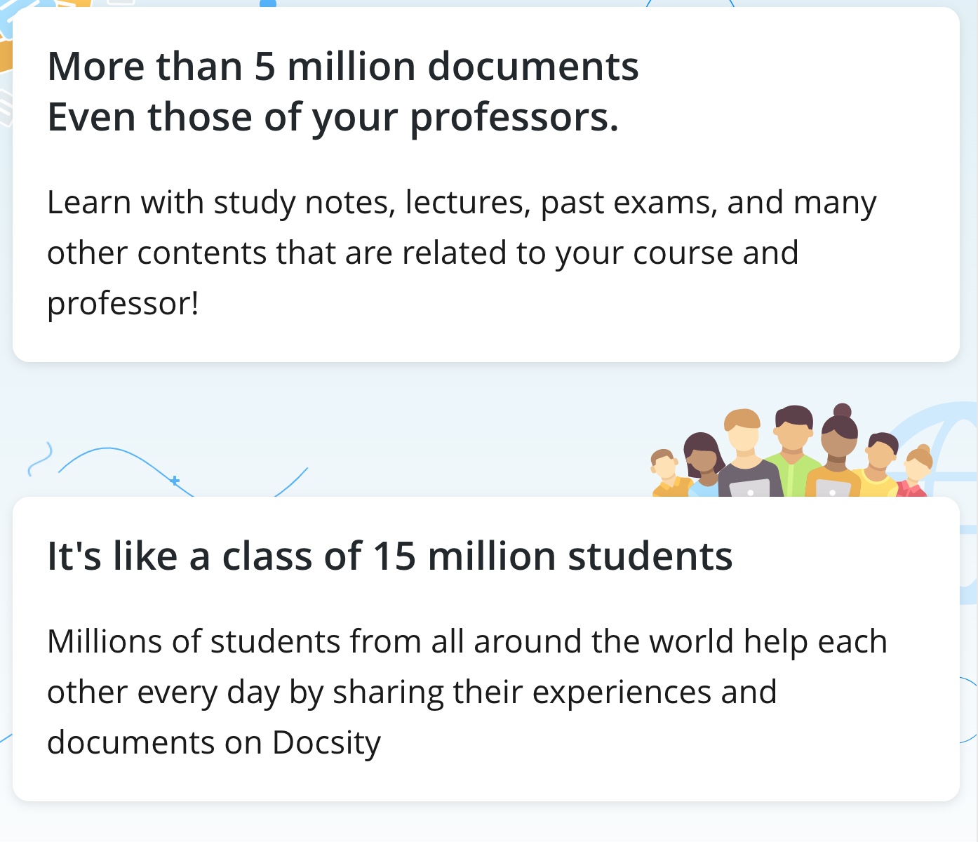 Na webu Docsity najdete obsáhlý archiv odkazů na dokumenty, studie a práce ze všech možných univerzit a podobných institucí. Docsity nabízí funkci pokročilého vyhledávání, ale také spoustu užitečných tipů a triků pro vaše studium spolu s možností účastnit se různých zajímavých webinářů.