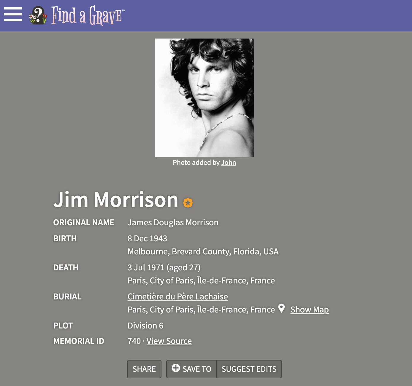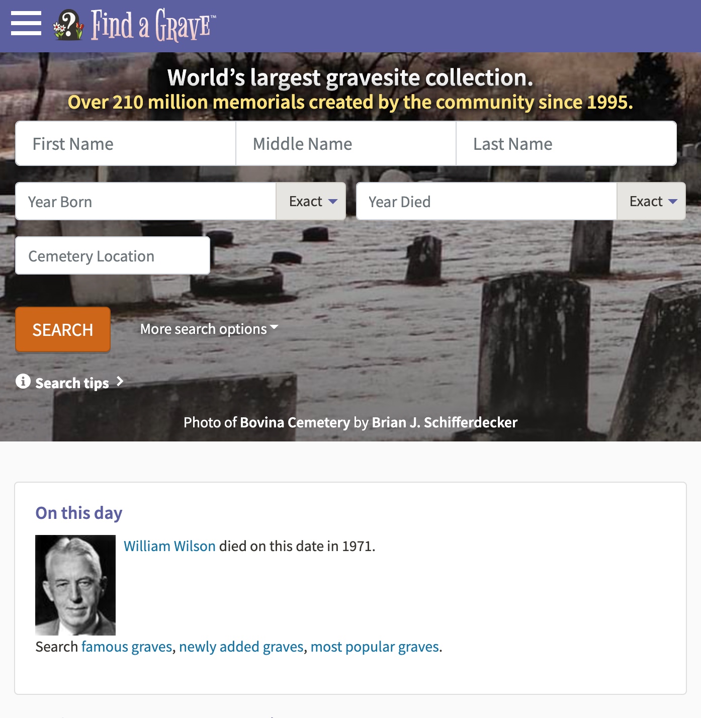 Vyhledávání hrobů může na první pohled vypadat jako přinejmenším zvláštní koníček, řada lidí se k němu ale čas od času z různých důvodů uchyluje. Web Findgrave vás nebude soudit a nebude se vás ptát, proč hledáte hrob své oblíbené celebrity ze 70. let, ale naopak vám spolehlivě poslouží, pokud to bude v jeho virtuálních silách. Na web můžete nahrávat také vaše vlastní příspěvky.