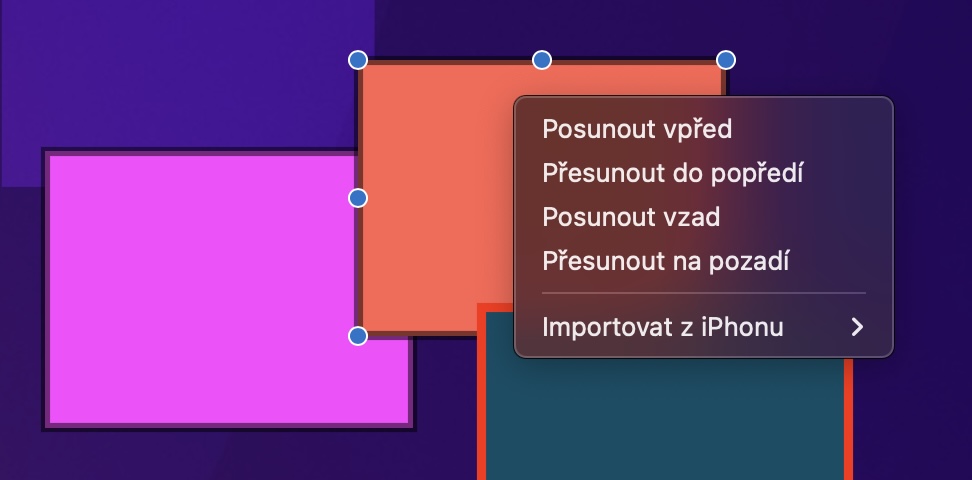 Při vložení objektu, popřípadě pro jeho označení, jej můžete různě upravit. Konkrétně můžete hlavně měnit jeho velikost a u některých složitějších objektů také další možnosti. Pokud byste ale chtěli nějaký objekt otočit, a to například chycením za roh, jako je tomu u některých grafických programů, tak se vám to nepodaří. I přesto ale naštěstí existuje způsob, pomocí kterého můžete vložené objekty otáčet – nejedná se o nic složitého. Jednoduše si objekt, který chcete otočit, klepnutím označte, a poté využijte dva prsty na trackpadu pro otočení. Konkrétně na trackpadu budete jeden prst posouvat nahoru a druhý dolů (či naopak), čímž se budou objekty otáčet.