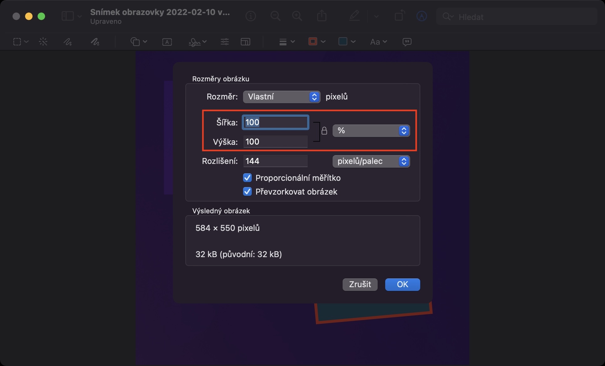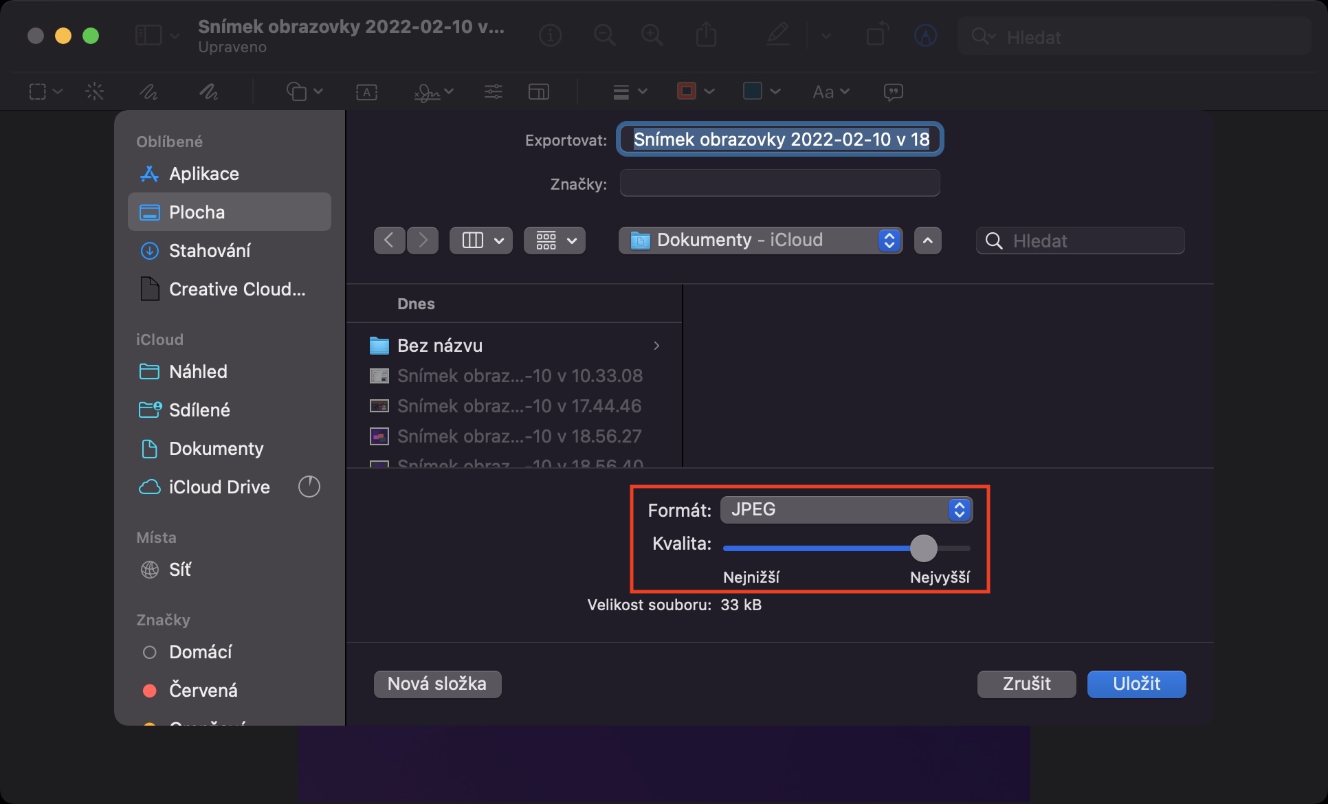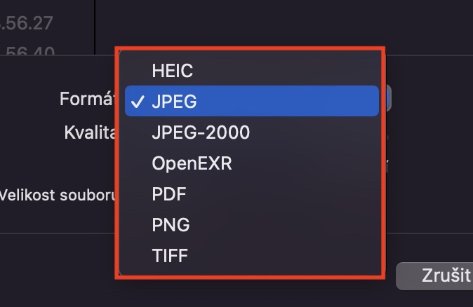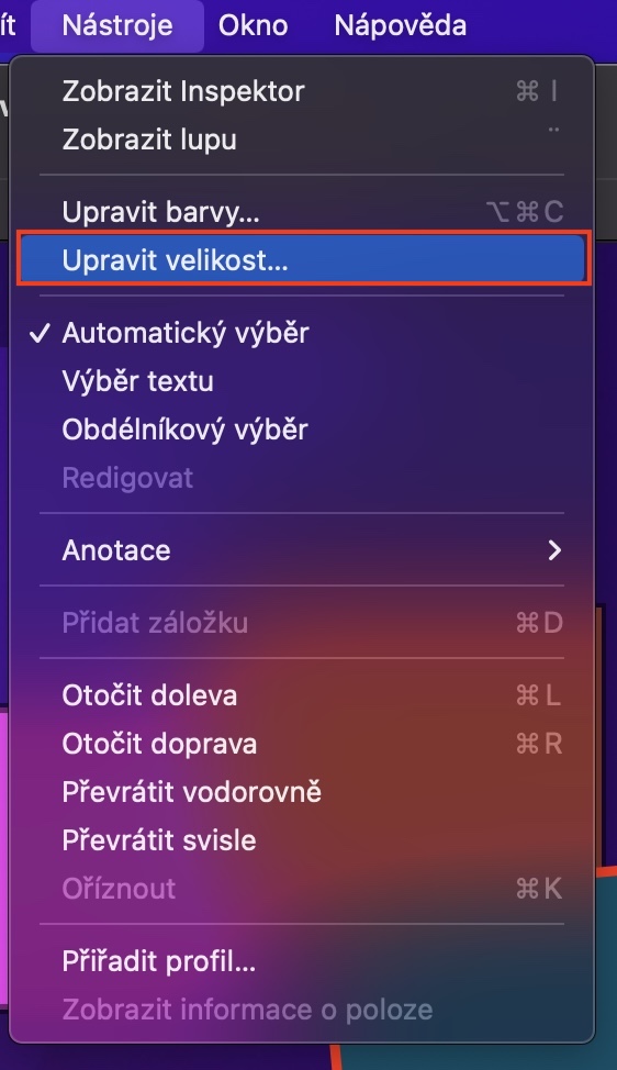 Potřebujete rychle a jednoduše zmenšit velikost nějakého obrázku či fotky? Pokud jste si na tuto otázku odpověděli kladně, tak vám s tím dokáže pomoci nativní Náhled. Jednoduše můžete obrázek komprimovat tak, že zmenšíte jeho rozlišení a zároveň provedete také změnu formátu, například na JPG. Co se týče změny rozlišení, tak tu provedete tak, že v horní liště otevřete záložku Nástroje, a poté vyberte Změnit velikost… Následně se vám otevře okno, ve kterém si novou velikost nastavíte. A pokud byste chtěli obrázek uložit v jiném formátu, tak v horní liště klepněte na záložku Soubor, a poté z menu vyberte možnost Exportovat… Otevře se nové okno, kde si následně níže můžete formát vybrat. Pak stačí klepnout na Uložit.