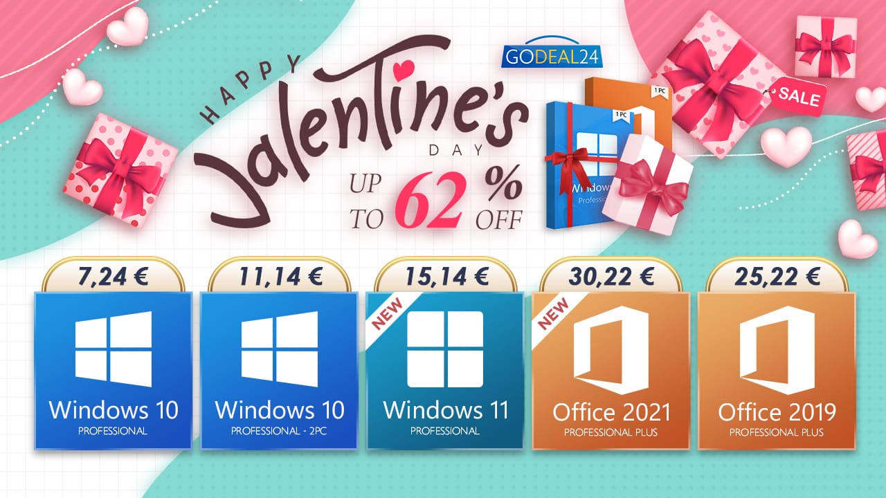 Svátek svatého Valentýna už navíc pomalu klepe na dveře. Pokud třeba hledáte vhodný dárek pro vaše nejbližší, nebo jen chcete udělat radost sami sobě, tak přesně nyní máte skvělou, avšak časově omezenou příležitost. V rámci akce Valentine’s Day Sale si můžete přijít například na Microsoft Office 2021 jen za 30,22 €, namísto původních 439,99 $, nebo na systém Windows, jehož cena začíná na 7,24 €. A věřte tomu, že slev je ještě víc! Dokonce až do výše 62 %.