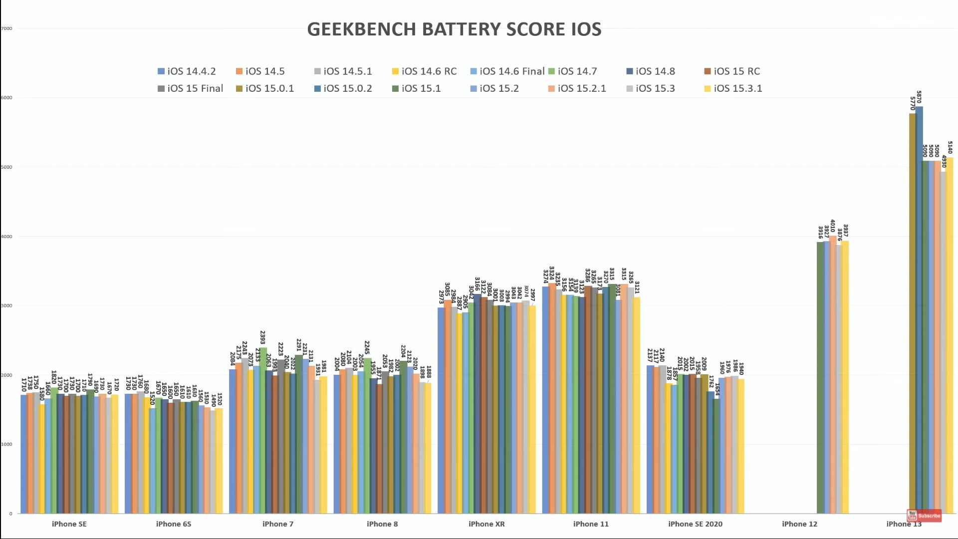 Hned úvodem se hodí říct, že je to tak „50 na 50“. U iPhonu SE 1. generace výdrž povyskočila z 1670 bodů na 1720 bodů. Drobný nárůst lze vypozorovat i u iPhone 6s, jenž se ze 1490 bodů dostal na 1520. Vzrůstajícího trendu si lze všimnout také u iPhone 7, který získal na iOS 15.3.1 1981 bodů. Na verzi předešlé to přitom bylo o 50 bodů méně. U iPhone 8 se téměř nic nezměnilo, byť je třeba říct, že oproti iOS 15.3 tento model ztratil 10 bodů. Dosáhl tak na 1888 bodů. Ztráty jsou pak zřetelné i u iPhonů XR a 11. První z jmenovaných získal 2997 oproti 3074. Druhý pak 3121 oproti 3265. Drobný pokles pak je i na iPhone SE 2. generace. Tento model obdržel 1940 bodů. Na iOS 15.3 to přitom bylo 1986. U zbytku modelů už pak graf jen stoupal. „Dvanáctka“ dosáhla na 3937 bodů, přičemž na předešlé verzi to bylo 3876. Nejmladší ve výběru potom obdržel 5140 bodů oproti 4930 bodům minule.