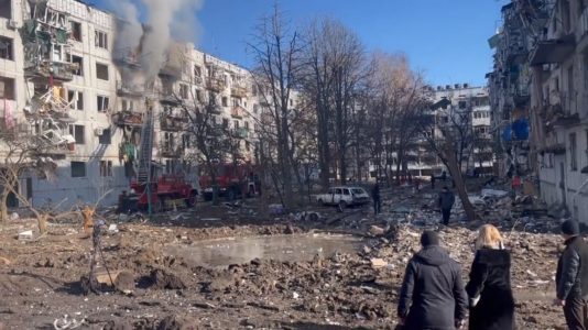 Russians bombed a civilian apartment complex in Chuhuiv, near Kharkiv pic.twitter.com/DwsXmIKN3i