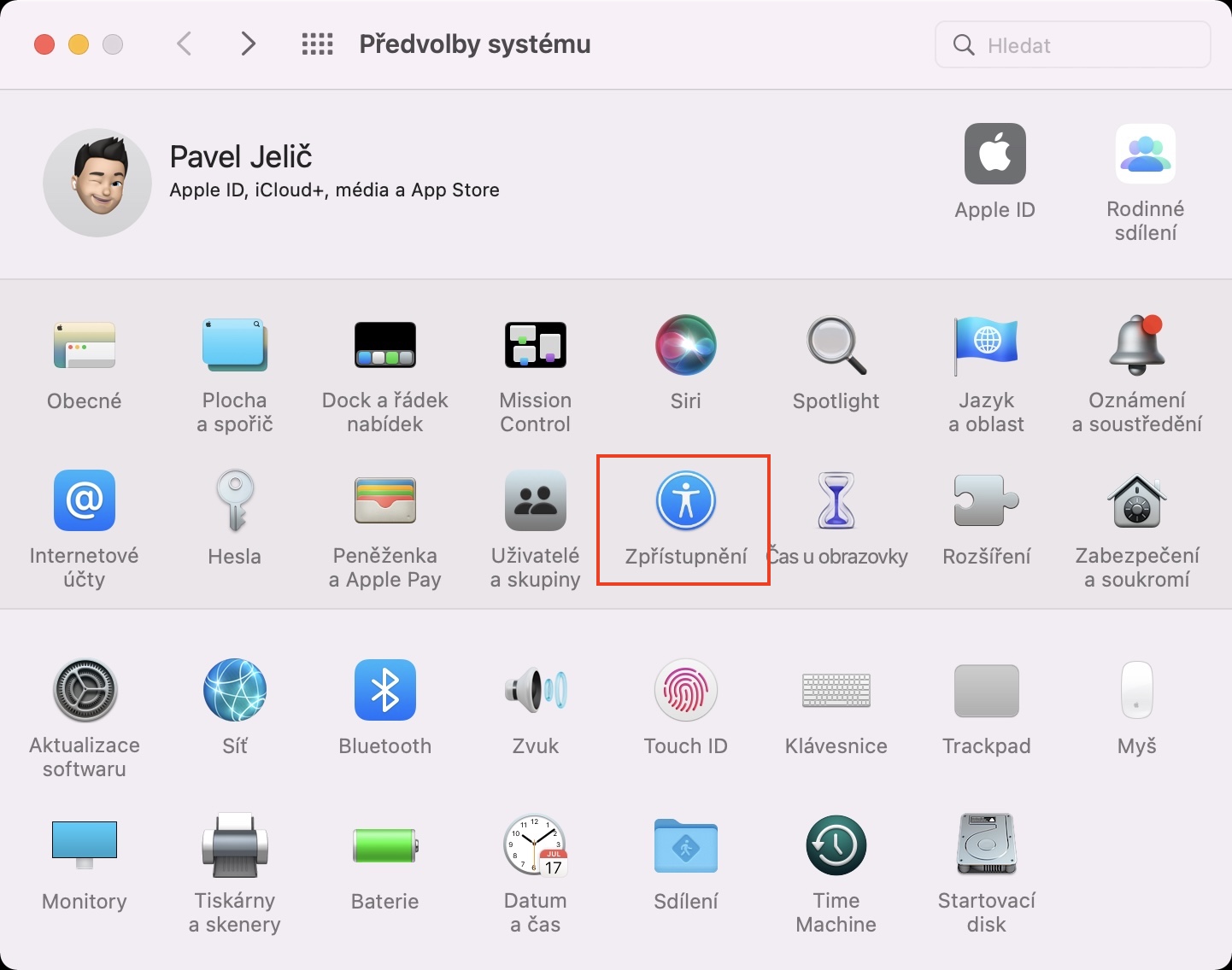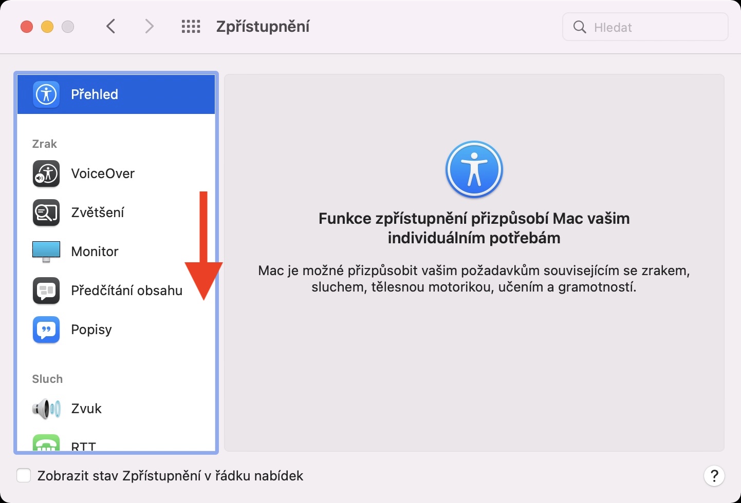 - V rámci tohoto okna najděte a rozklikněte sekci s názvem Zpřístupnění.