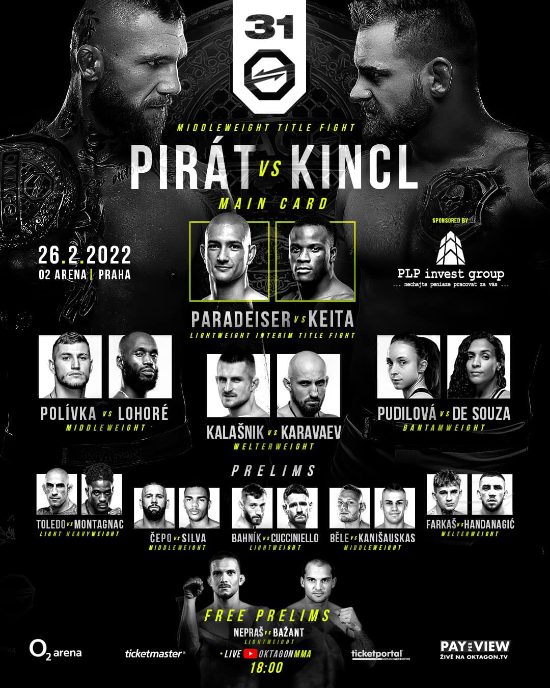 Oktagon 31 živě by dnes měl běžet na obrazovce naprosto každého fanouška MMA. Po několikatýdenním půstu tu totiž máme další turnaj domácí organizace OKTAGON MMA, který se navíc svou startovkou jeví více než zajímavě. O jeho hlavní zápas se postará Pirát s Kinclem, těšit se ale můžeme třeba i na Lohorého, Kalašnika, Pudilovou či Bahnika. Zatímco předešlé hvězdně obsazené turnaje včetně toho, na kterém se utkal Vémola s Véghem, byly vysílány mimo jiné na O2 TV Sport v Česku a na JOJ Plus na Slovensku, posledních několik turnajů včetně toho dnešního ve formě OKTAGON 30 běží jen na dvou platformách – konkrétně na OKTAGON.tv skrze Pay per view a na Tipsportu. Oktagon živě zdarma naleznete zde.