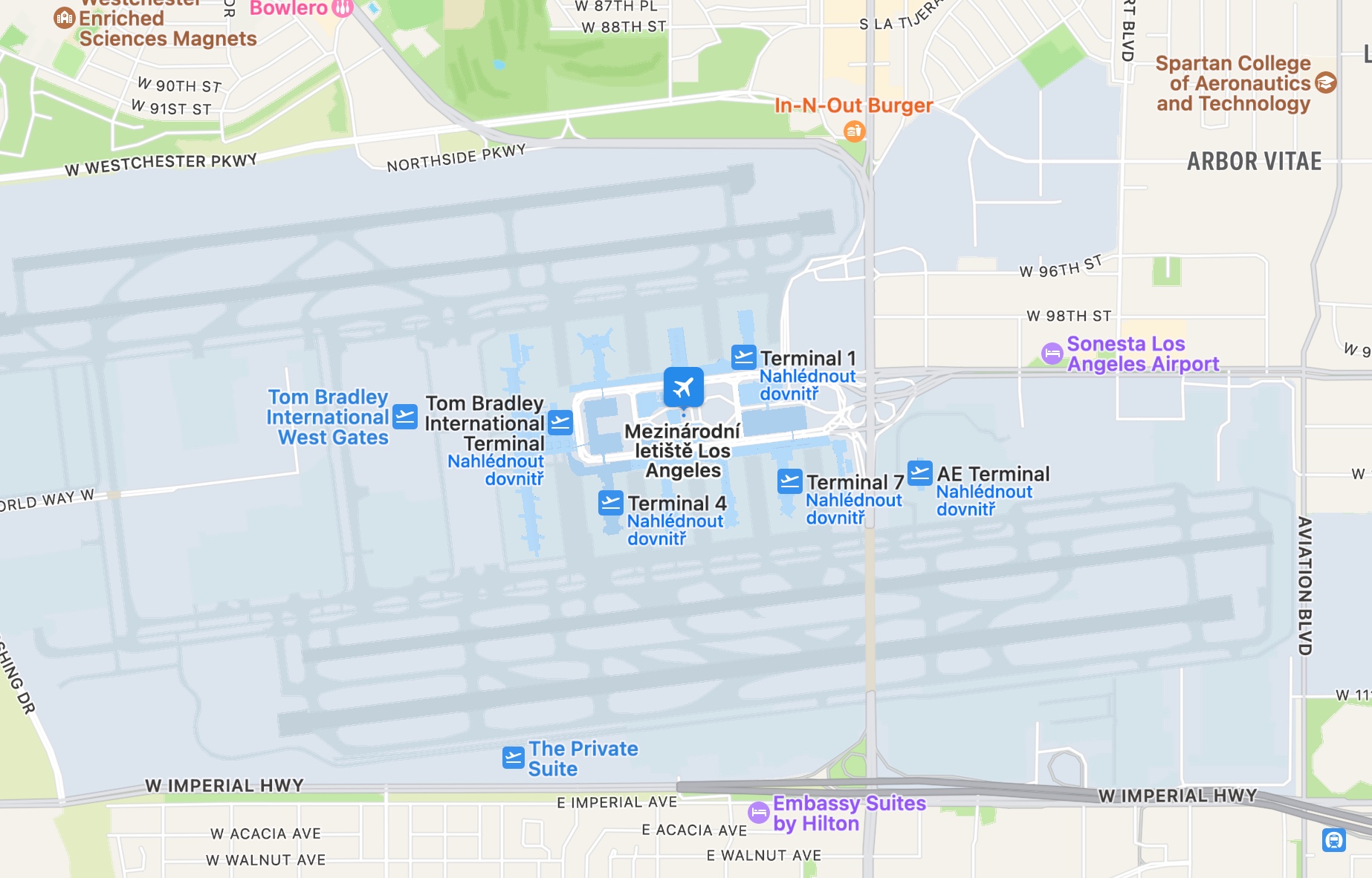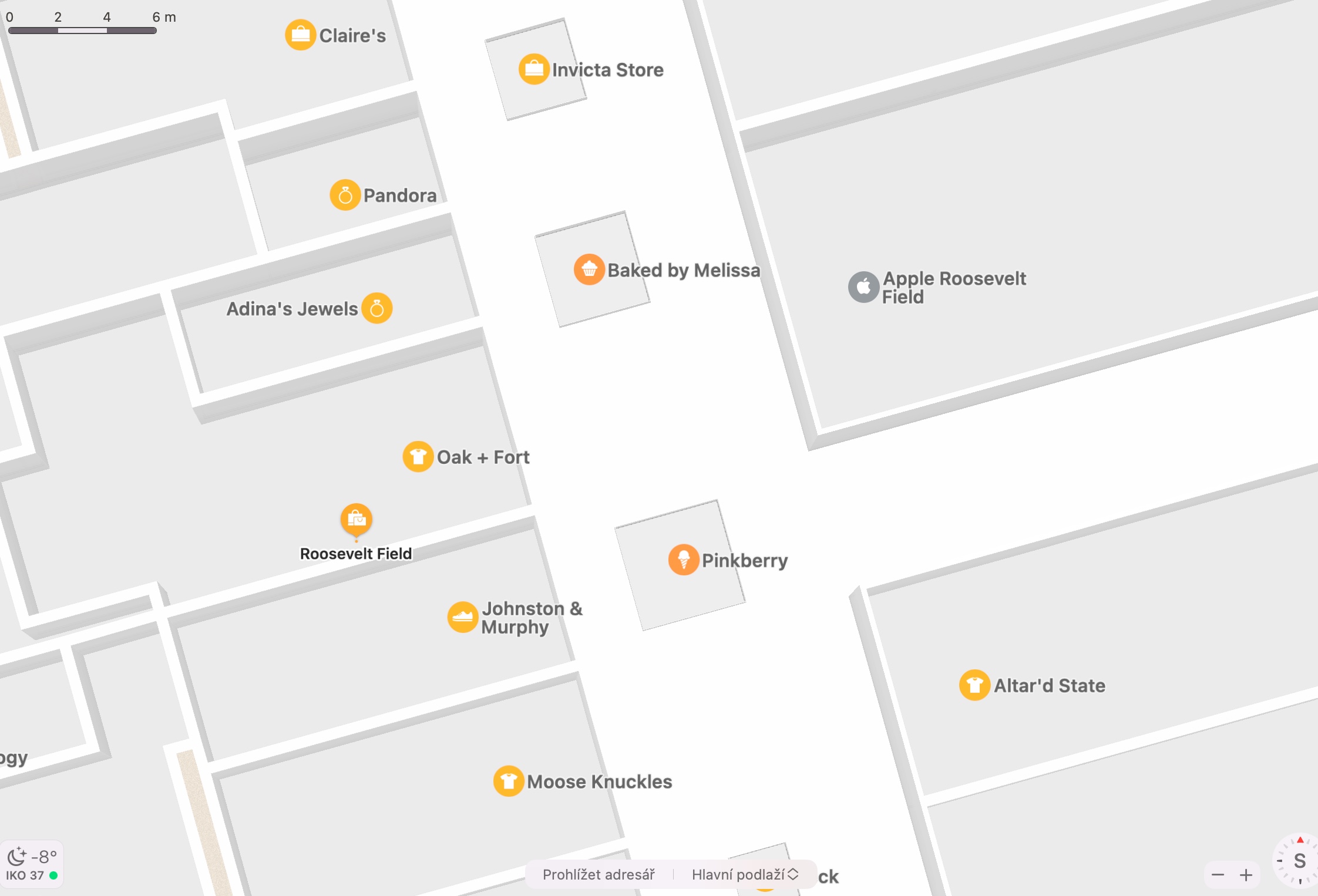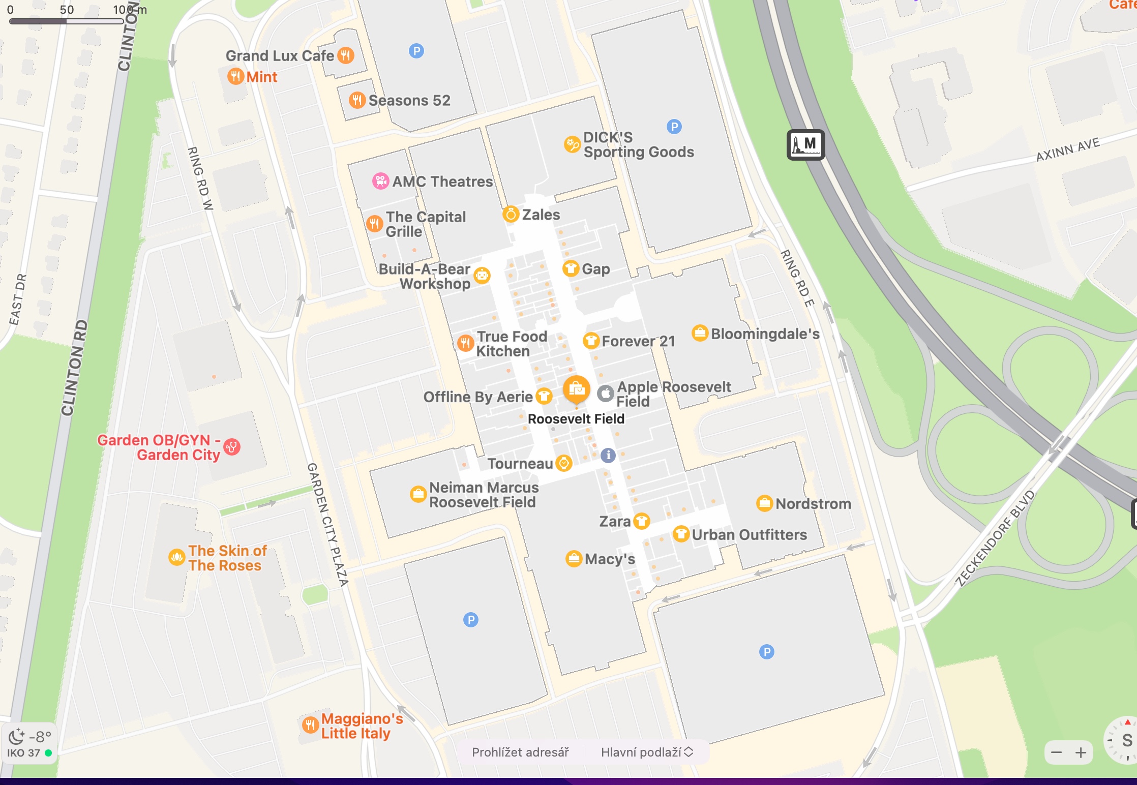 Nativní Mapy od Applu jíž nějakou dobu nabízí také možnost zobrazení důležitých bodů a podrobností u letišť nebo třeba ve vybraných nákupních střediscích. Snadno si tak můžete s předstihem naplánovat, které obchody a která místa navštívite, nebo se zorientovat na letišti ještě před odletem na dovolenou. Pro zobrazení plánku vybraného letištiště nebo nákupního centra nejprve najděte v nativních Mapách příslušné místo. Pokud dané místo nabízí možnost detailního přehledu, naleznete na něm nápis Nahlédnout dovnitř, na který poté stačí už jen kliknout. V rozbalovacím menu ve spodní části okna s mapou můžete přepínat mezi jednotlivými podlažími.