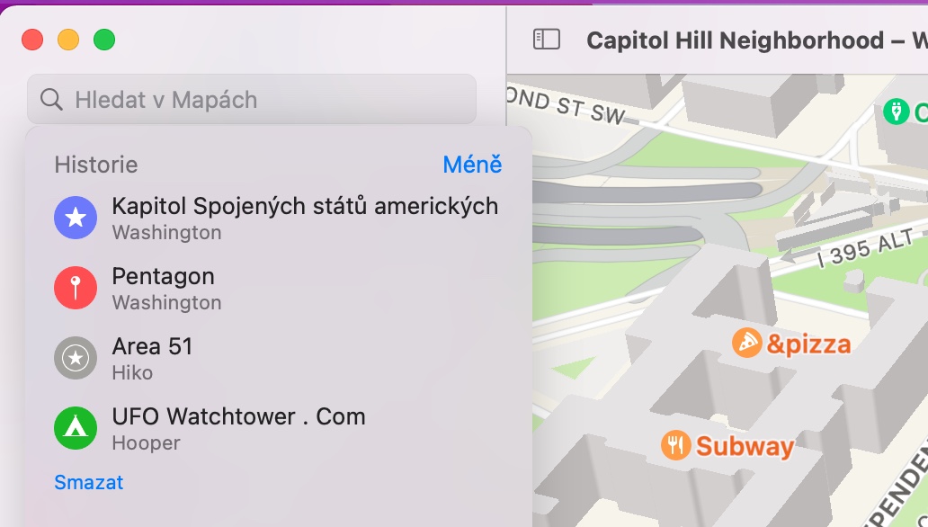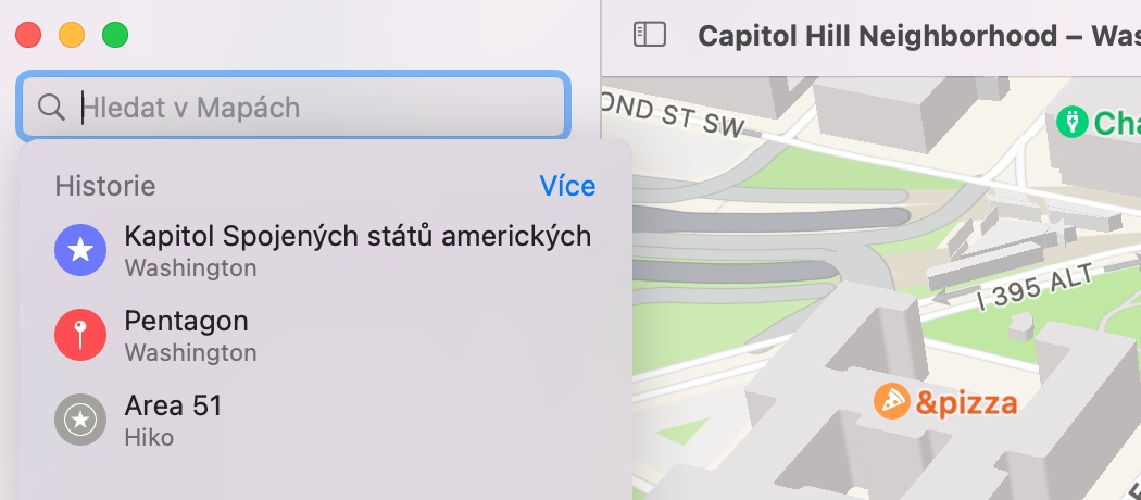 Podobně jako třeba v případě internetového prohlížeče se i u map může stát, že budete z různých důvodů potřebovat promazat historii vyhledávání. Nejprve klikněte do vyhledávacího pole v panelu na pravé straně okna aplikace Apple Maps. Kliknutím na Více zobrazíte kompletní historii vyhledávání, na konci seznamu najdete tlačítko Smazat. Poté, co na něj kliknete, je historie vašeho vyhledávání v Mapách na Macu spolehlivě vymazána.