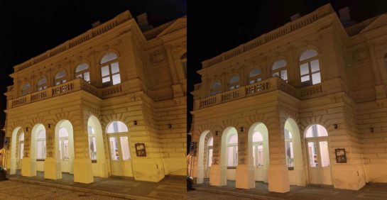 Pokud se bavíme o noční fotografii, můžete samozřejmě i při zhoršených světelných podmínkách pořizovat snímky ze všech objektivů zařízení, protože oba modely telefonů nabízejí pro každý objektiv noční režim, a to i pokud se bavíme o tom čelním. K dosažení ideálních výsledků se ale hodí využívat výhradně primární snímač, tedy ten širokoúhlý, který má nejlepší clonu.