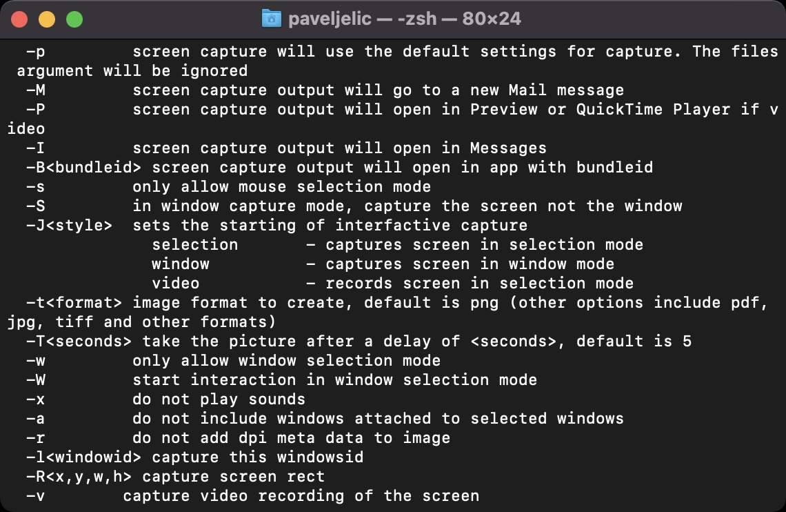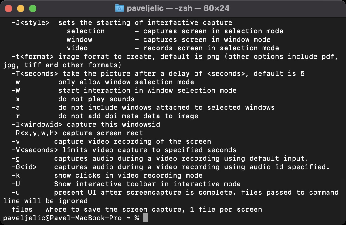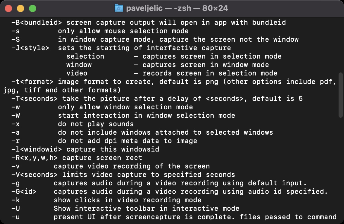 Každý ví, že na Macu můžete snímky obrazovky jednoduše zachytit pomocí příslušných klávesových zkratek – konkrétně se jedná o Command + Shift + 3, 4 nebo 5. První zkratka zachytí celou obrazovku, druhá pak výběr či okno a třetí vás přesune do propracovaného rozhraní pro zachytávání snímků či nahrávání obrazovky. Málokdo však ví, že snímky obrazovky můžete jednoduše pořizovat i přímo přes Terminál. Možná se ptáte, jaká je výhoda pořizování právě přes Terminál? Odpověď zní jednoduše – najdete zde totiž nespočet různých možností, ke kterým byste se nedostali. Nastavit si třeba můžete to, po jaké době se snímek obrazovky pořídí a mnoho dalšího. Pro zobrazení všech možností, které jsou k dispozici, stačí využít příkaz níže. Formát příkazu pro vytvoření snímku obrazovky je pak screencapture [vybrané přepínače] [cesta pro uložení].