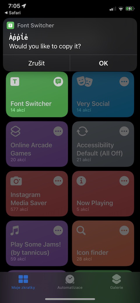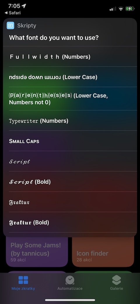 Baví vás využívat při psaní na iPhonu nejrůznější fonty? Zkratka s názvem Font Switcher vám v tomto směru umí hodně usnadnit práci. Nejprve se vás zeptá, jaký text chcete upravit. Poté vám dá na výběr z poměrně bohaté nabídky fontů, a celý proces zakončí tím, že vámi uvedený text napíše ve vybraném fontu a s vaším svolením jej zkopíruje do schránky, odkud jej pak můžete vložit tam, kam potřebujete.